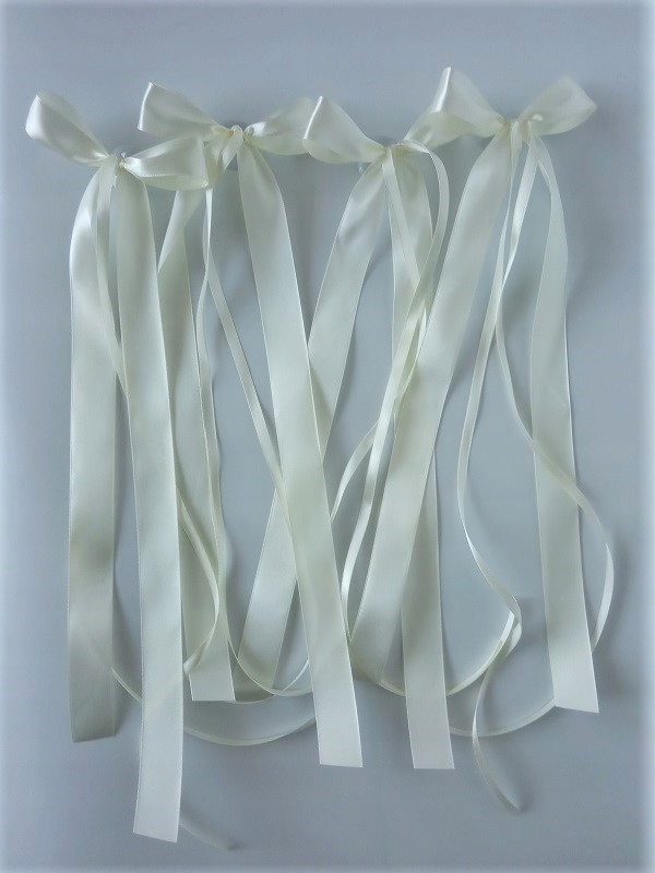 * чотири кремові бантики зі стрічками розміром приблизно 10 см х приблизно 40 см для дверей (один бант для кожних дверей).