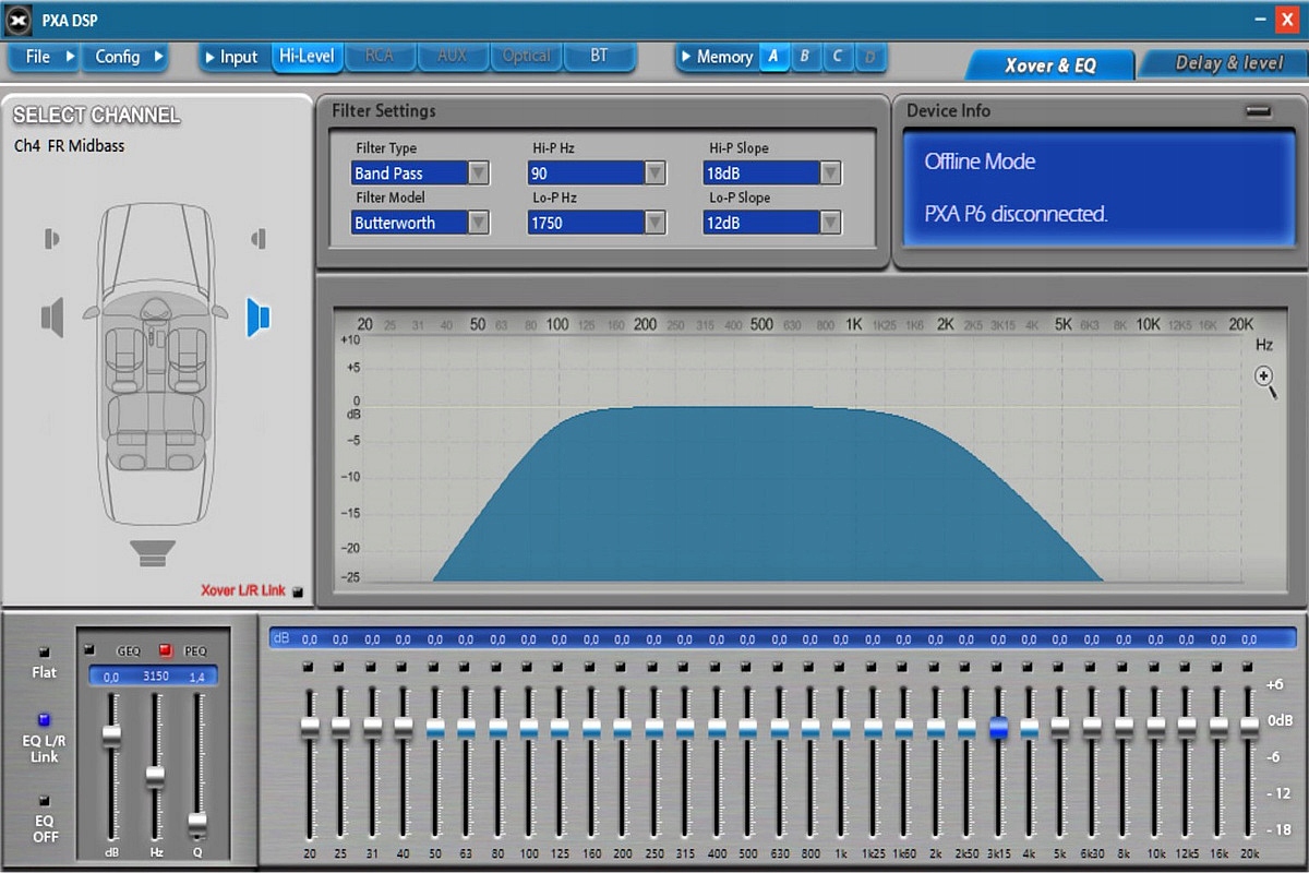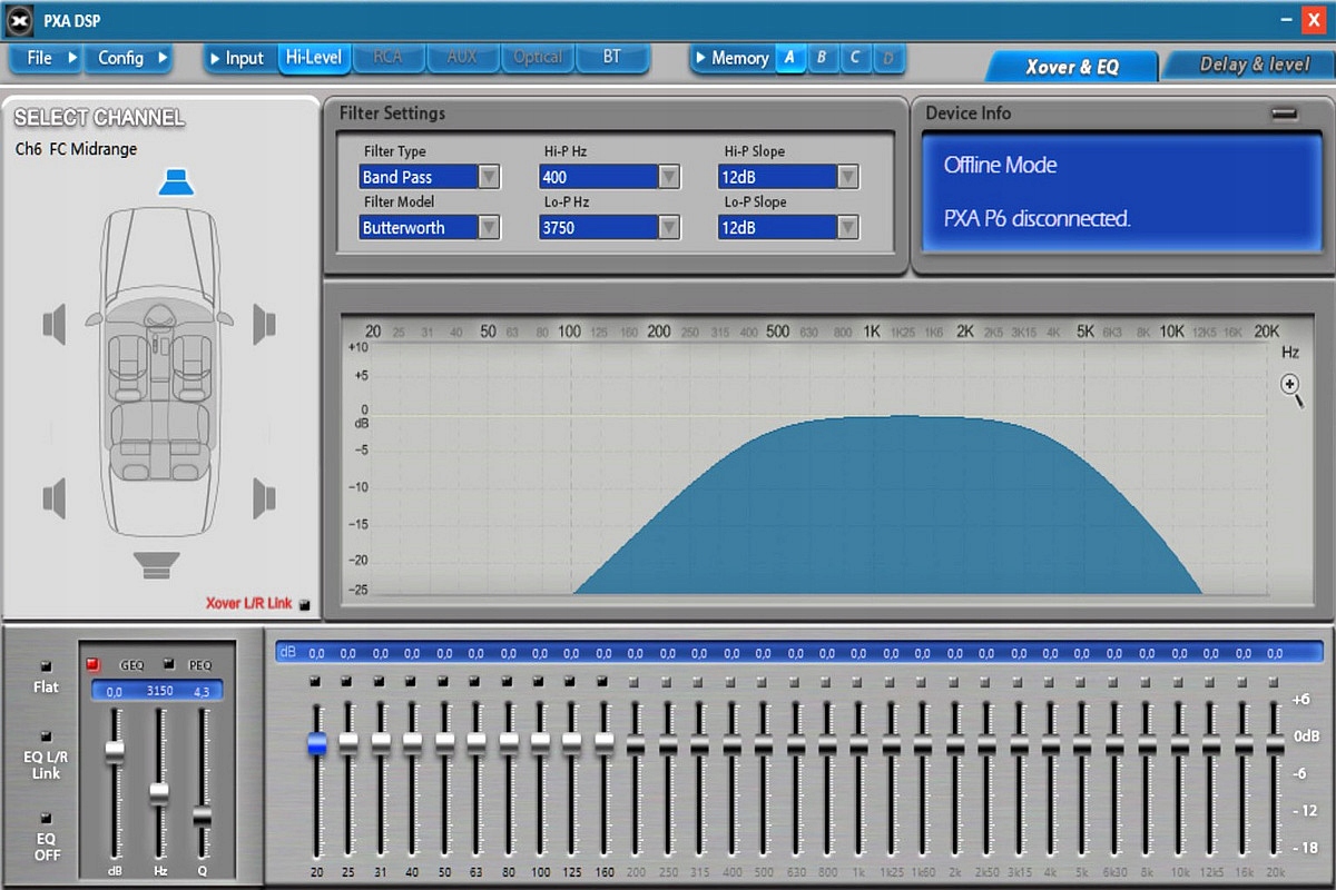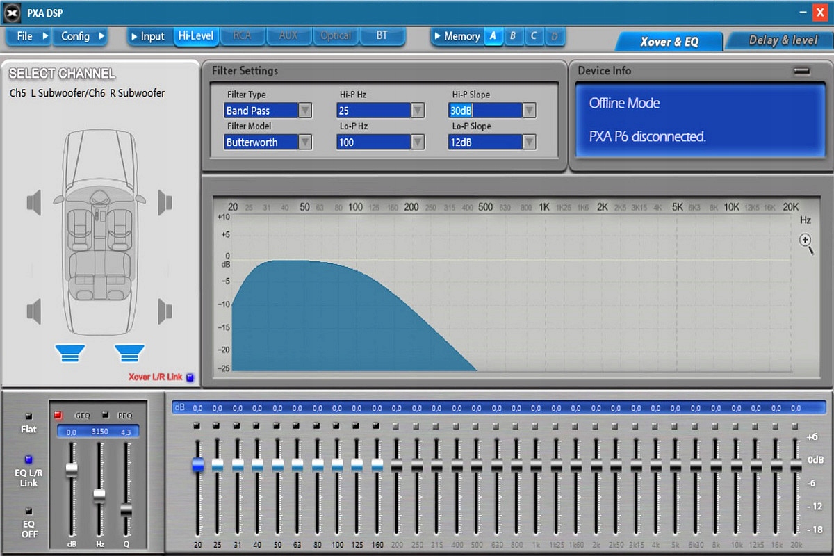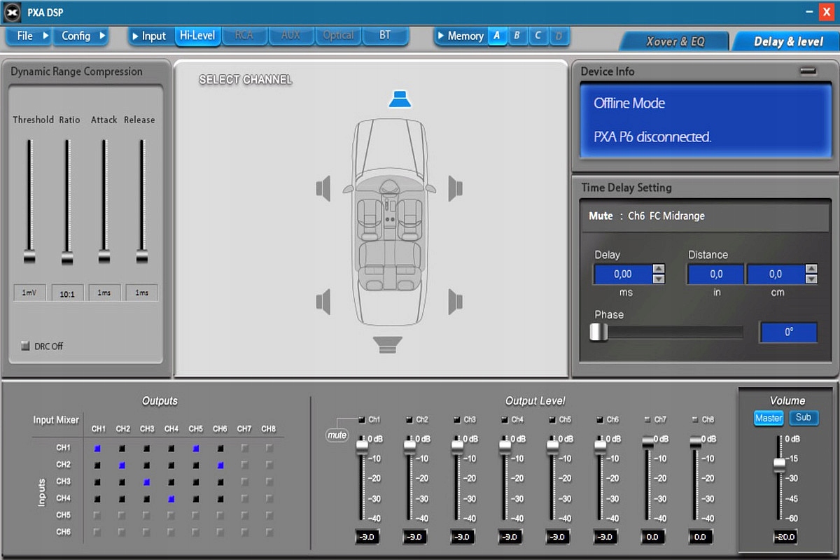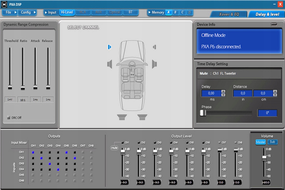 PXA-P6 — це процесор аудіосигналу (DSP) із вбудованим підсилювачем потужності з високою ефективністю, хорошим звуком і дуже невеликі розміри серії PX PLUG OEM UPGRADE німецького бренду Excursion, призначені для легкого та неінвазивного розширення заводських автомобільних аудіосистем (OEM). Пристрій дозволяє істотно підвищити якість звуку стандартної заводської системи, наблизивши її до рівня професійної автоаудіосистеми, зберігаючи при цьому повну можливість легкого відновлення системи в початковий стан (наприклад, після закінчення терміну оренди, перед продажем автомобіля тощо). PXA-P6 має 6-канальний професійний цифровий звуковий процесор і вбудований підсилювач потужності, підключений до установки OEM через роз'єм ISO DIN Plug & Play. Він має всі необхідні функції, якими часто користуються професіонали при налаштуванні та налаштуванні передових аудіосистем. Спеціальне програмне забезпечення для ПК дозволяє будь-яку конфігурацію вхідних і вихідних каналів, налаштування часової корекції і рівнів сигналу, а також повну підтримку активних кросоверів і 31-смугового графічного і параметричного еквалайзера, окремо в кожному аудіоканалі. Майстер швидкого налаштування, що входить до складу програмного забезпечення, робить усе легким, простим і зрозумілим. Додатковою зручністю при тонкому налаштуванні звуку є 3 комірки пам'яті налаштувань звуку, які можна швидко перемикати в реальному часі. Процесор оснащений 4 вхідними каналами High Input з рівнем динаміка і 2 вхідними каналами Bluetooth Audio з автоматичним режимом увімкнення/вимкнення. Вбудований 4-канальний підсилювач має достатню вихідну потужність для ефективного керування оригінальними динаміками OEM або окремо встановленими іншими динаміками з помірними вимогами до потужності. Це означає, що пристрій також може працювати незалежно від заводського радіо, стаючи більш гнучким головним блоком для багатьох різних типів мобільних аудіопристроїв. Вбудований підсилювач виготовлений за ефективною технологією FRD (Full Range Digital) і гарантує стабільну роботу при опорі навантаження 4 Ом. Безпека встановлення та використання забезпечується системами, які захищають підсилювач від випадкового короткого замикання, перевантаження та занадто високої температури. Процесор Excursion PXA-P6 також оснащений лінійними виходами (6 каналів / 4 В), які за допомогою пучка кабелів, завершених штекерами RCA, дозволяють подальше розширення системи додатковими зовнішніми підсилювачами більшої потужності та/або підключенням активний сабвуфер (наприклад, Excursion PXA-8B) . Увімкнення та вимикання додаткових підсилювачів здійснюється через вихід управління Remote Out, який має можливість програмувати час затримки (0-10 секунд) для усунення можливих перешкод, які іноді можуть виникати при вмиканні/вимкненні додаткових підсилювачів або інших пристроїв.