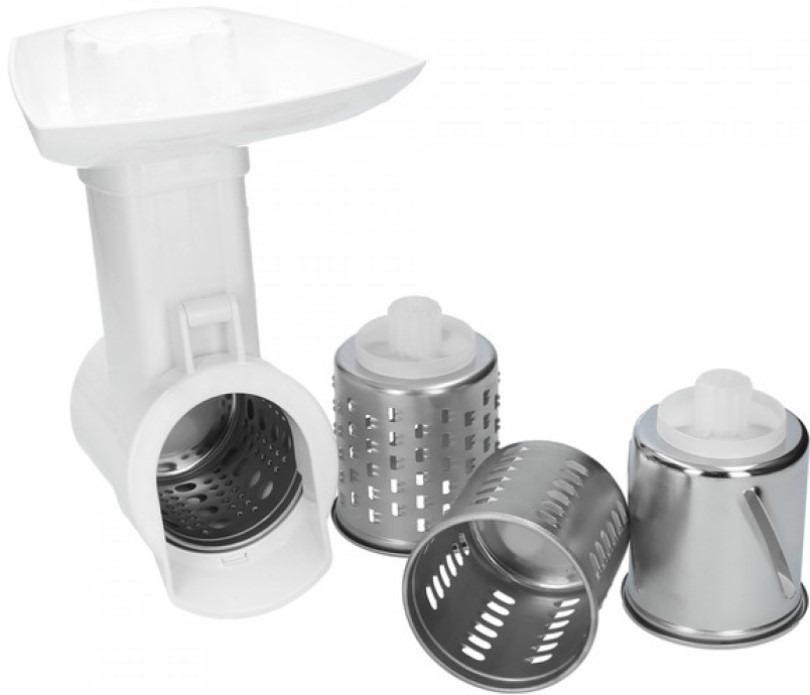 Подрібнювач овочів є аксесуаром, який найчастіше обирають для м’ясорубок. Шредер - це насадка, яка кріпиться на корпусі машини замість камери подрібнення. Ми вставляємо металеві терки всередину корпусу подрібнювача, які обертаються, щоб подрібнити, нарізати або подрібнити овочі та фрукти. Залежно від використовуваної терки їх можна нарізати дрібною стружкою, великою стружкою, скибочками, подрібнити в кашку. Установка слайсера на корпус машини займає всього кілька секунд.