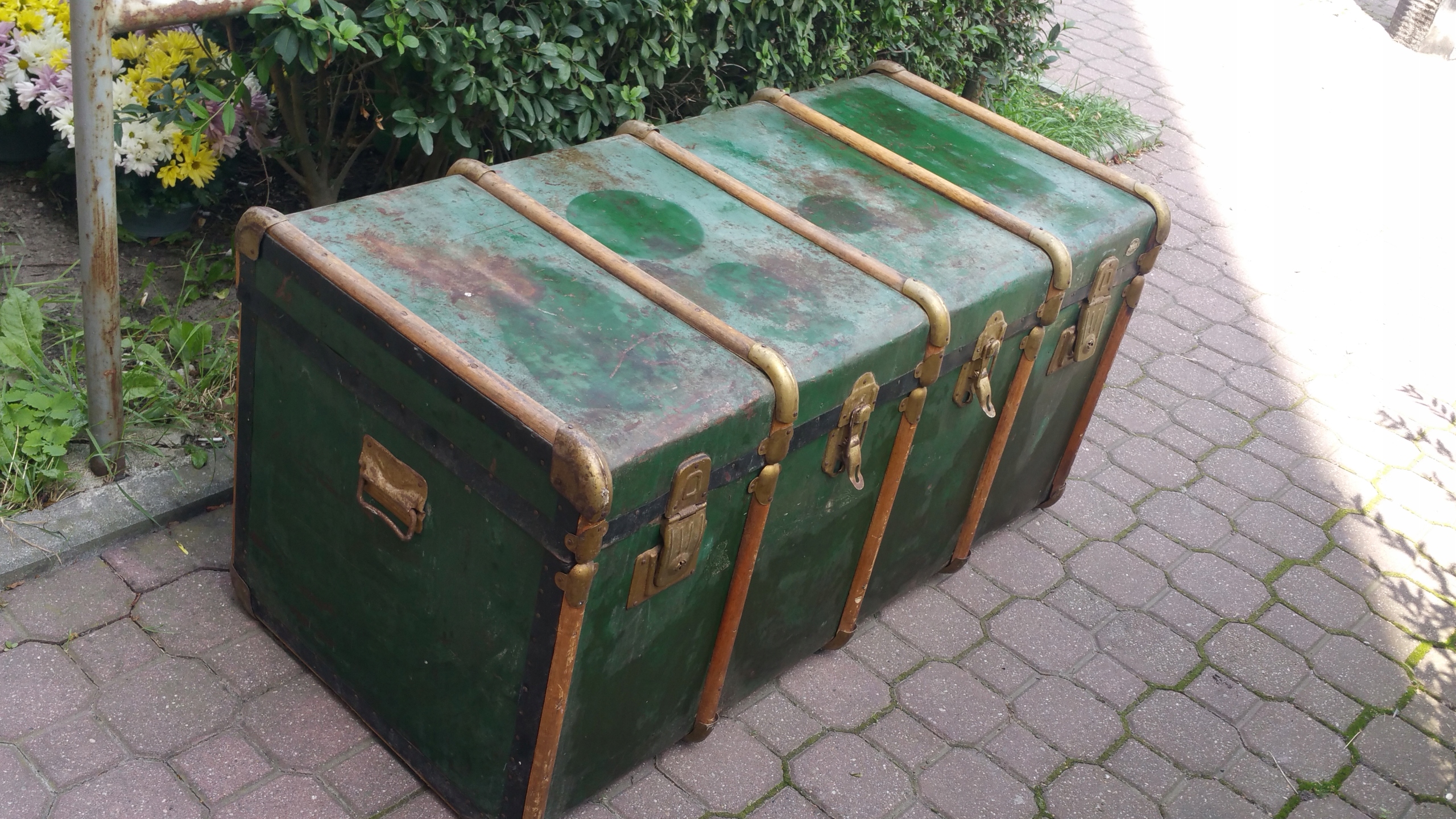 Duża 115 cm x 56 cm stara włoska skrzynia kufer drewniany z okuciami