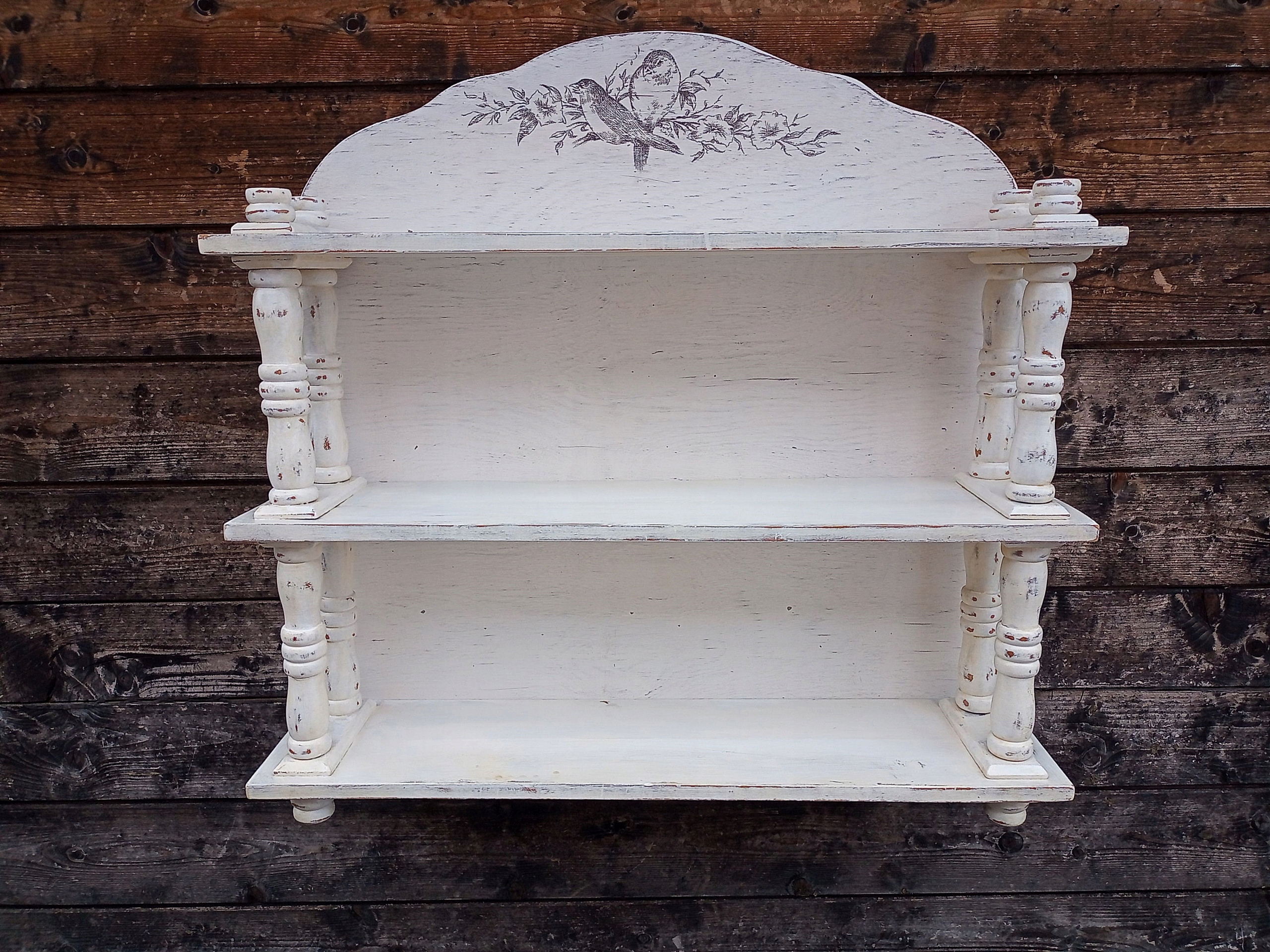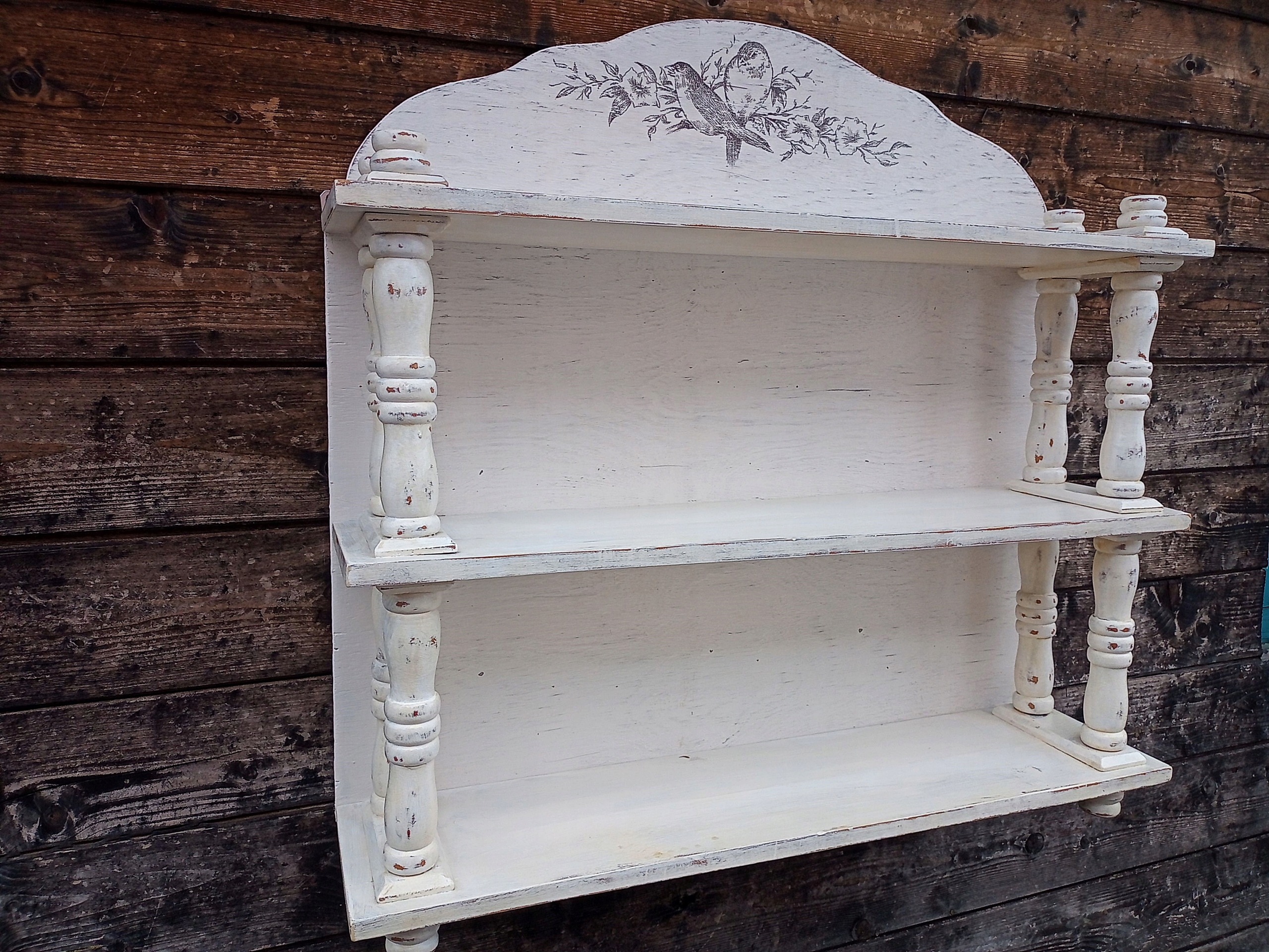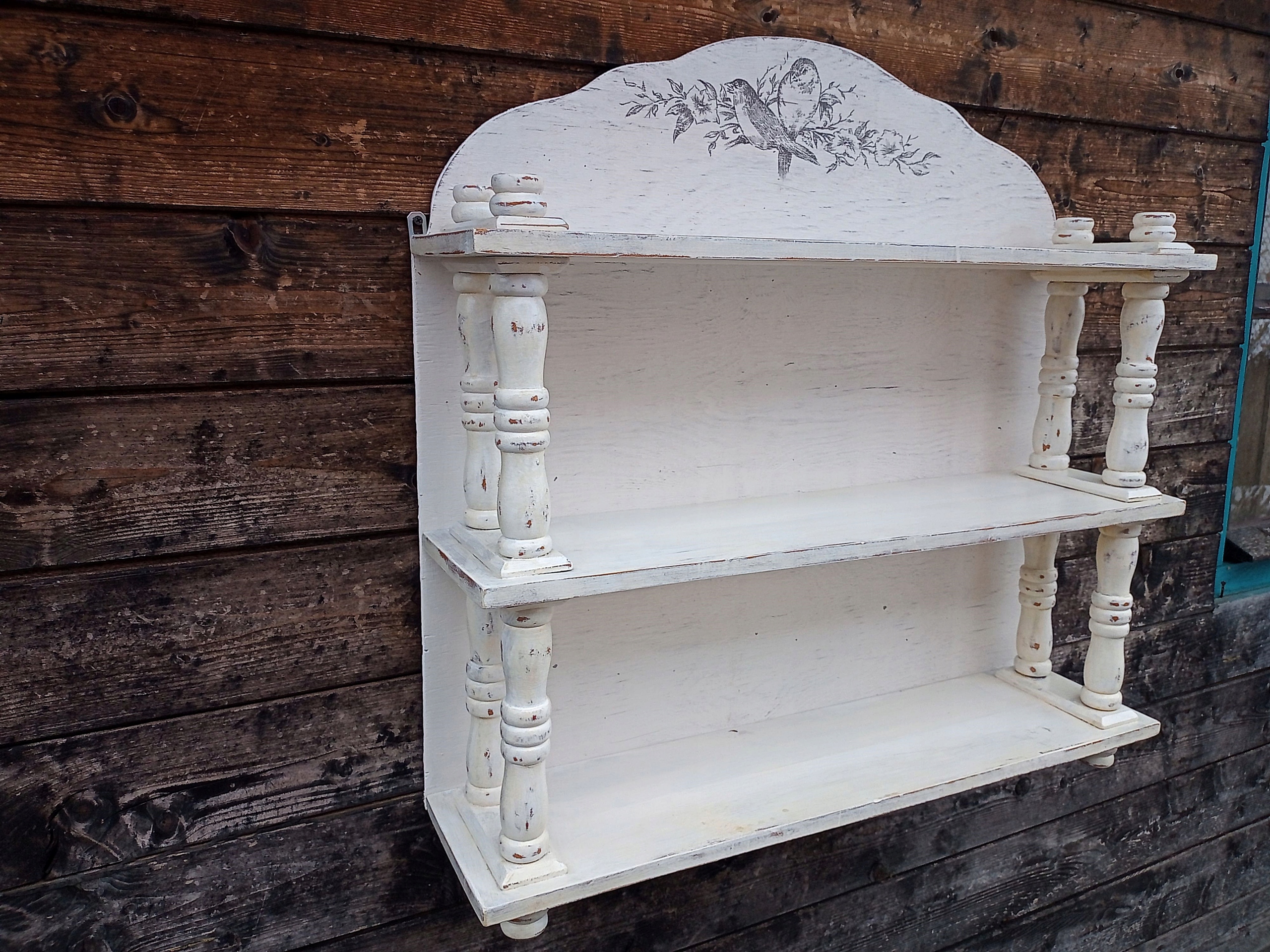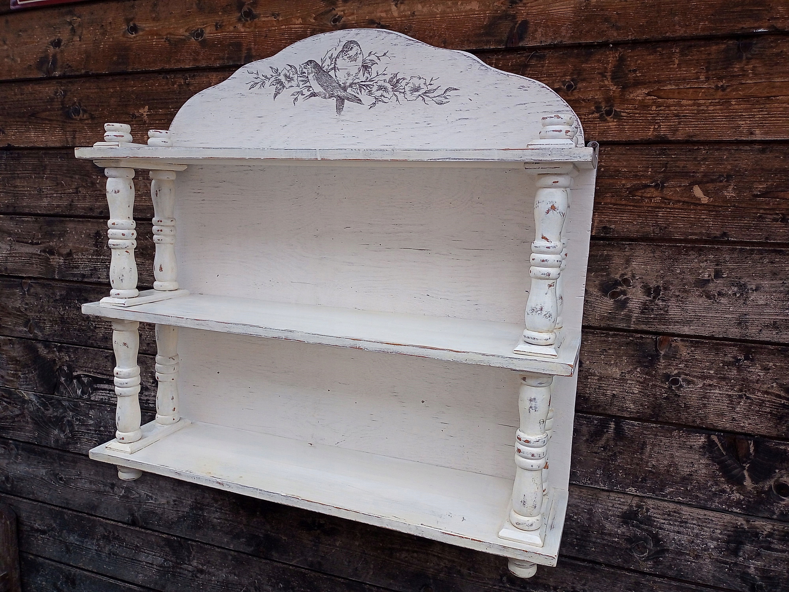 ВЕЛИКА ФАРБОВАНА ДЕРЕВ'ЯНА ПОЛИЦЯ ШЕББІ ШИК