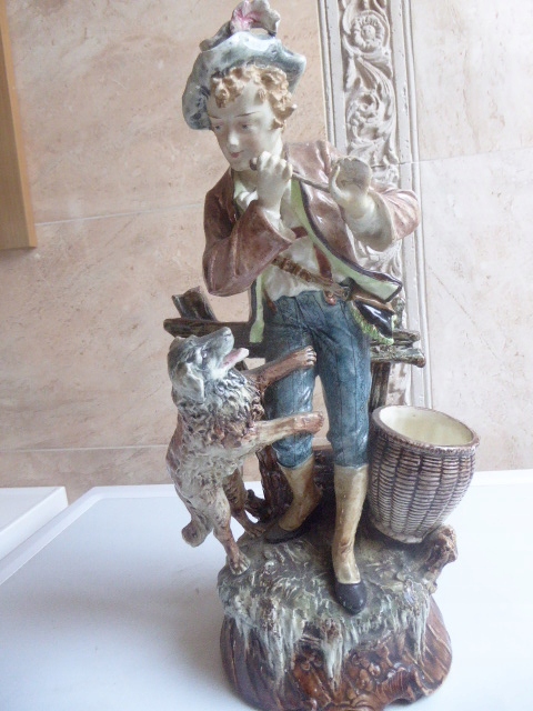 Duża Figurka Chłopiec z Psem Ceramika