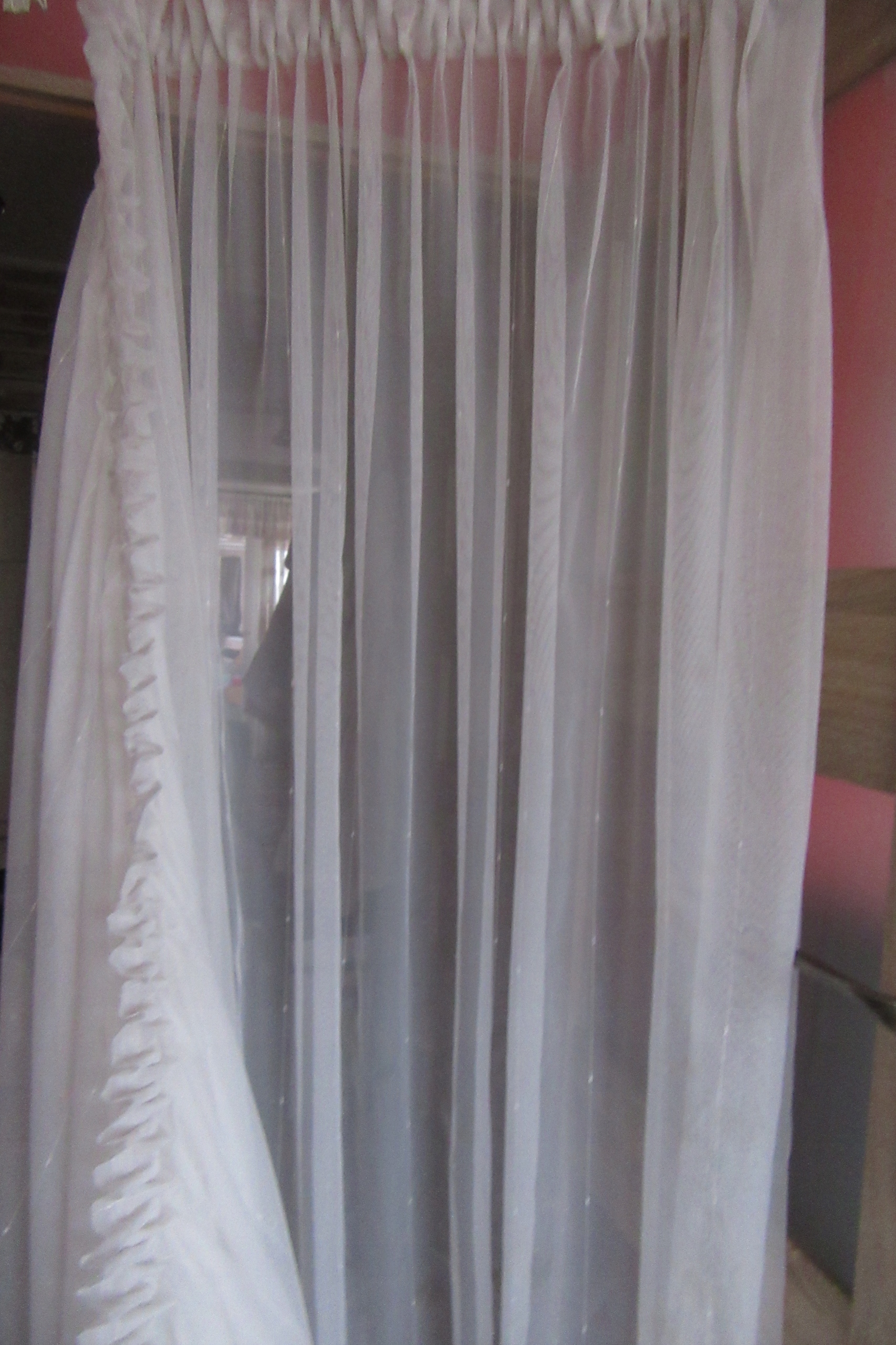 ПРОДАЄТЬСЯ БІЛА ШТОРА НА СТРІЧЦІ, ПОКЛАДЕНА ОДНІМ БОКОМ ПО ШВАХ, МІНІМАЛЬНО ЗАБРУДНЕНА, ПОТРІБНО ПРАТИ
