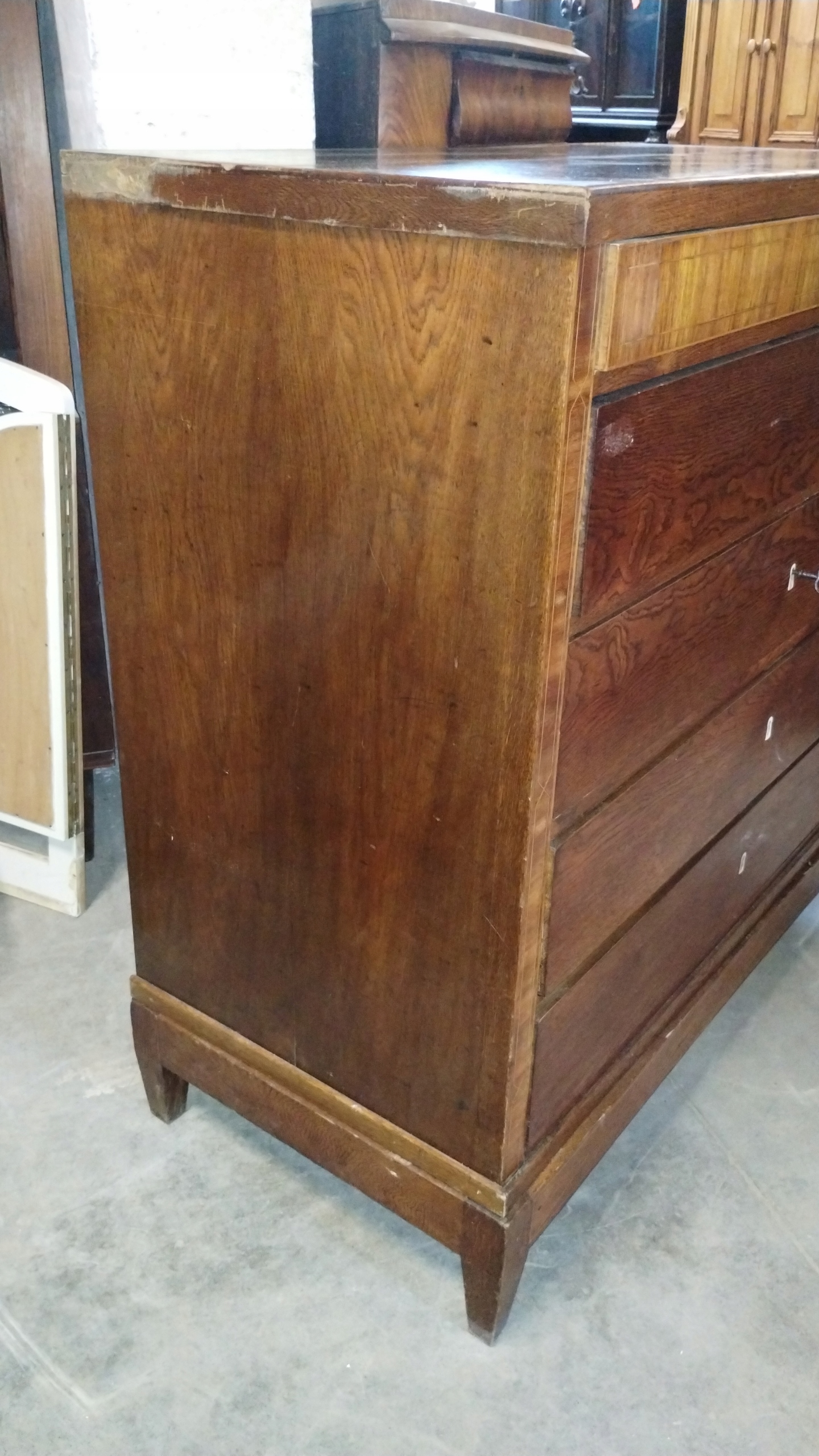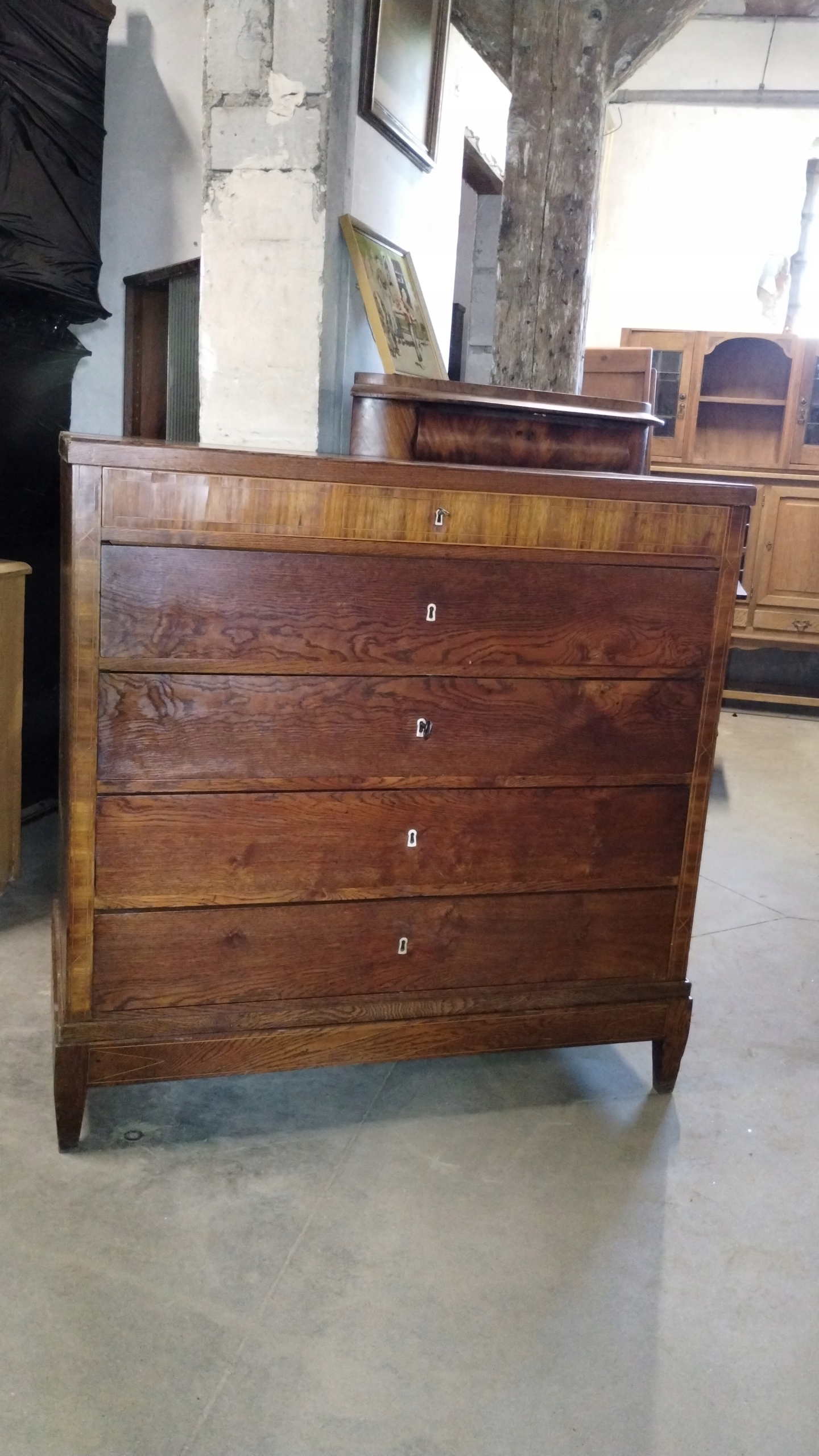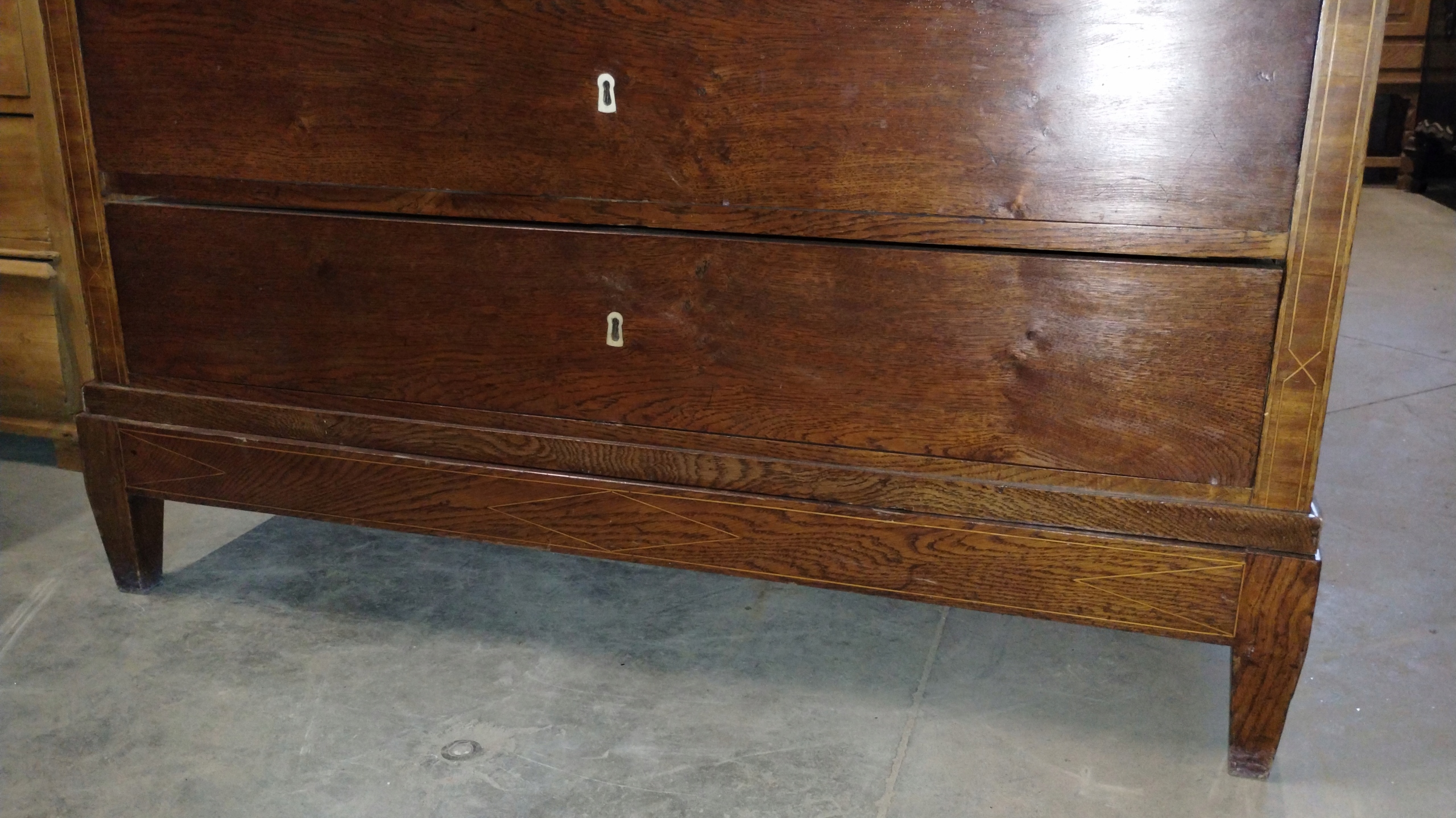 Duża komoda klasycystyczna około 1800r. intarsjowana mahoń i dąb