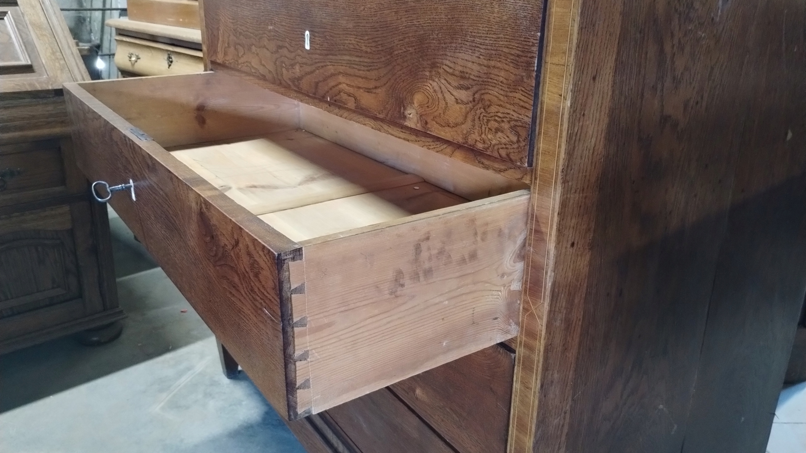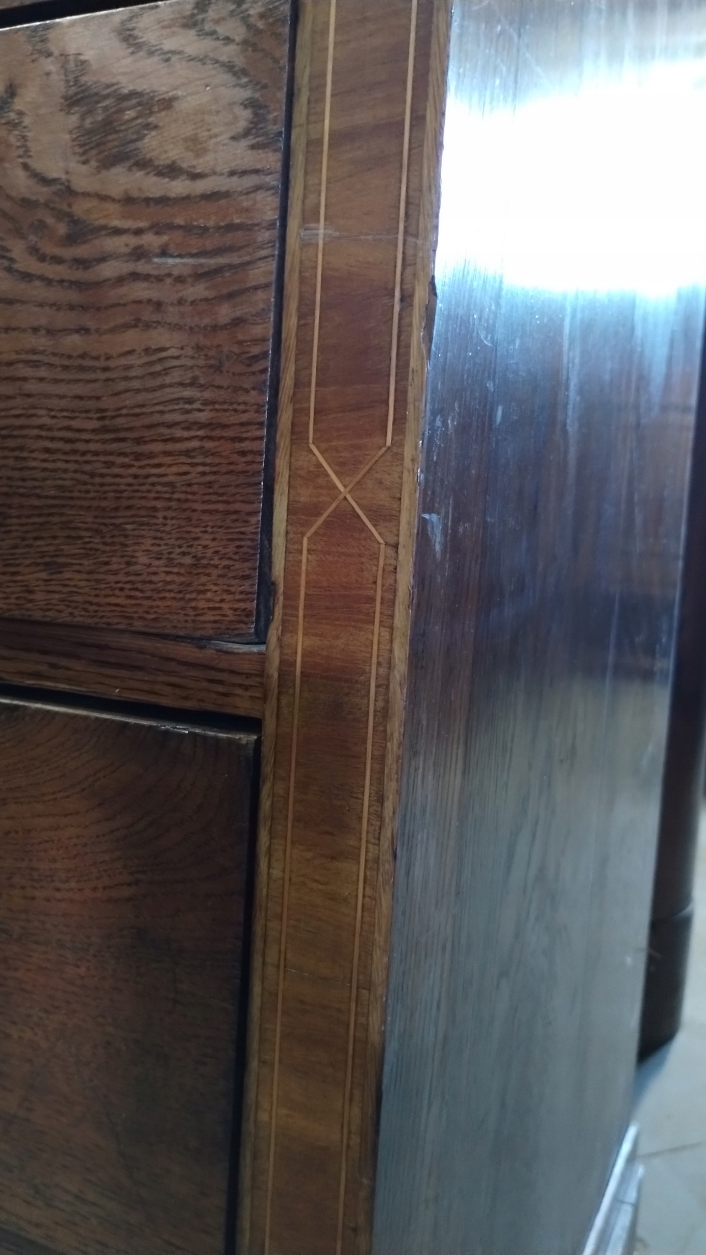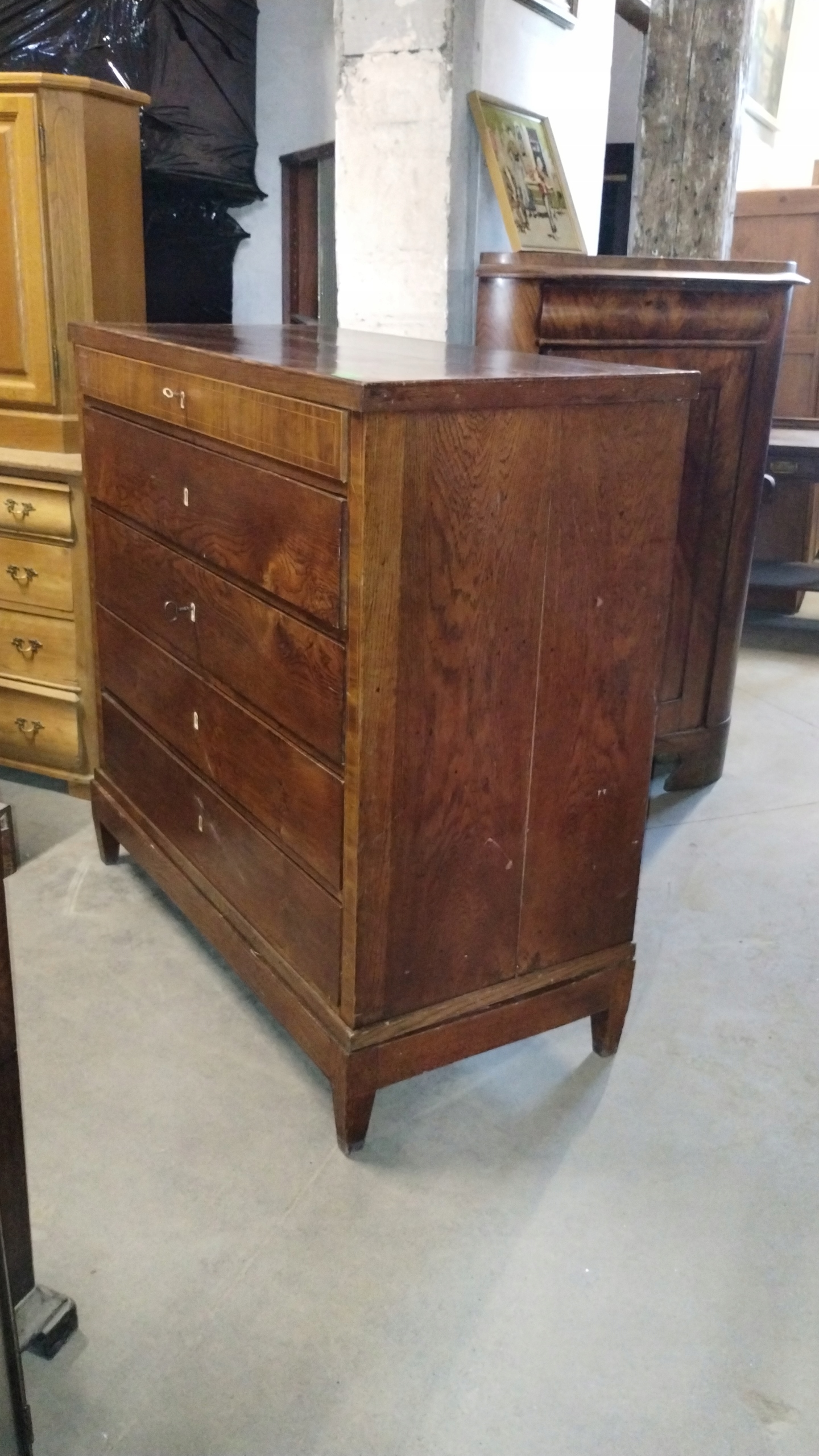 Duża komoda klasycystyczna około 1800r. intarsjowana mahoń i dąb