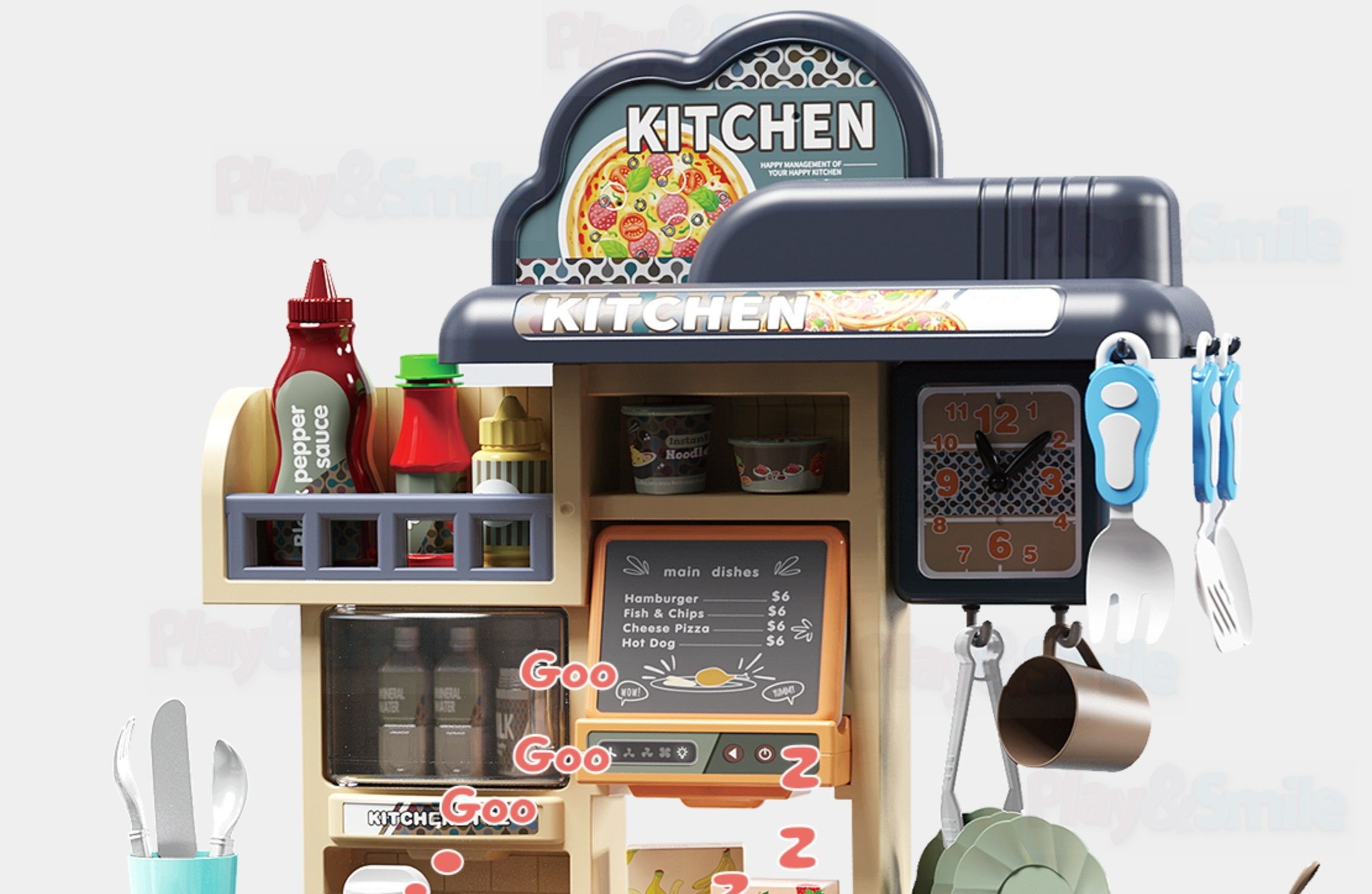 Під час гри кухня видає звуки приготування їжі, а від конфорок піднімається пара, що робить веселощі ще приємнішими. автентичний. Крім того, конфорки світяться, створюючи чарівну атмосферу.