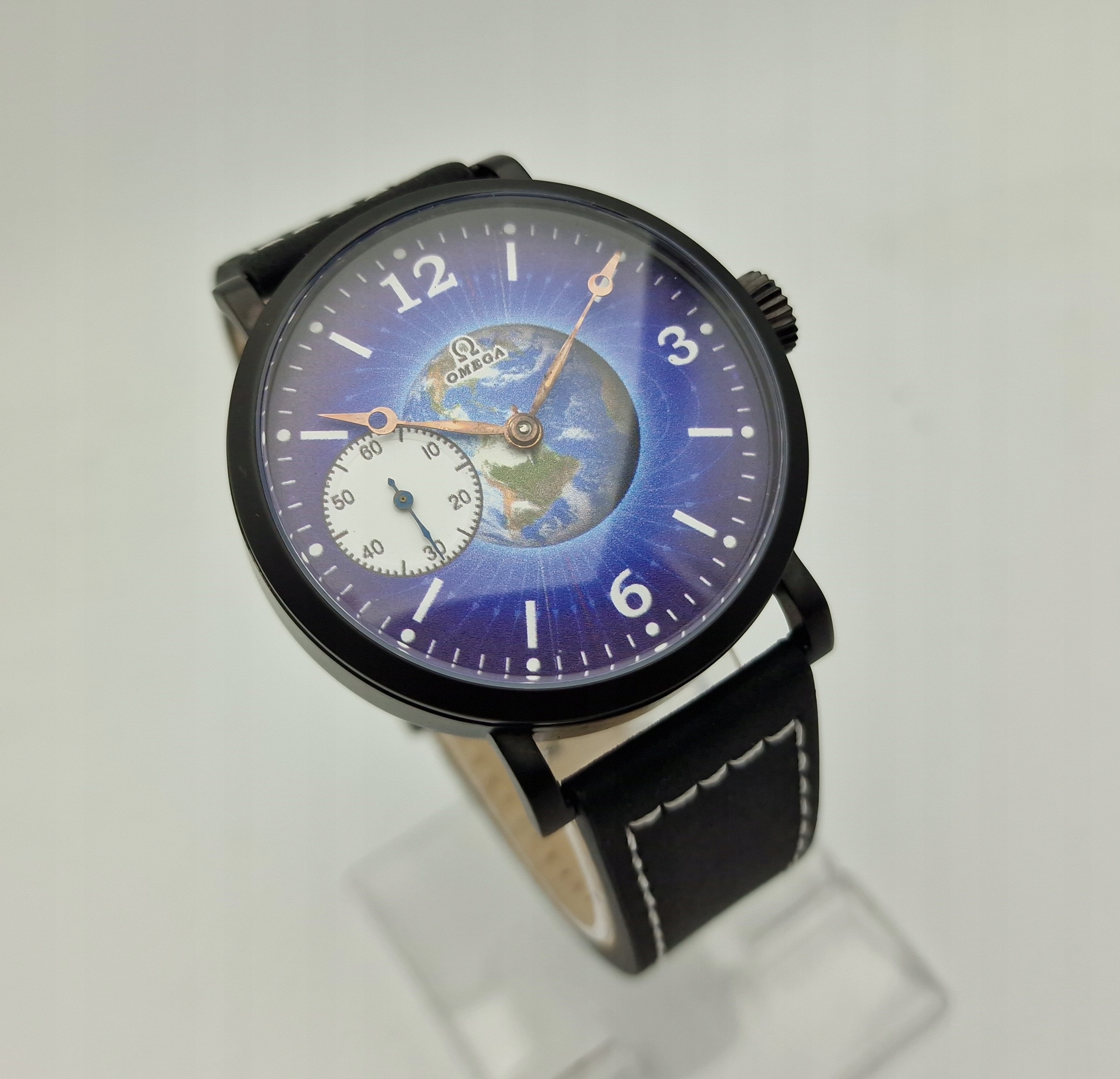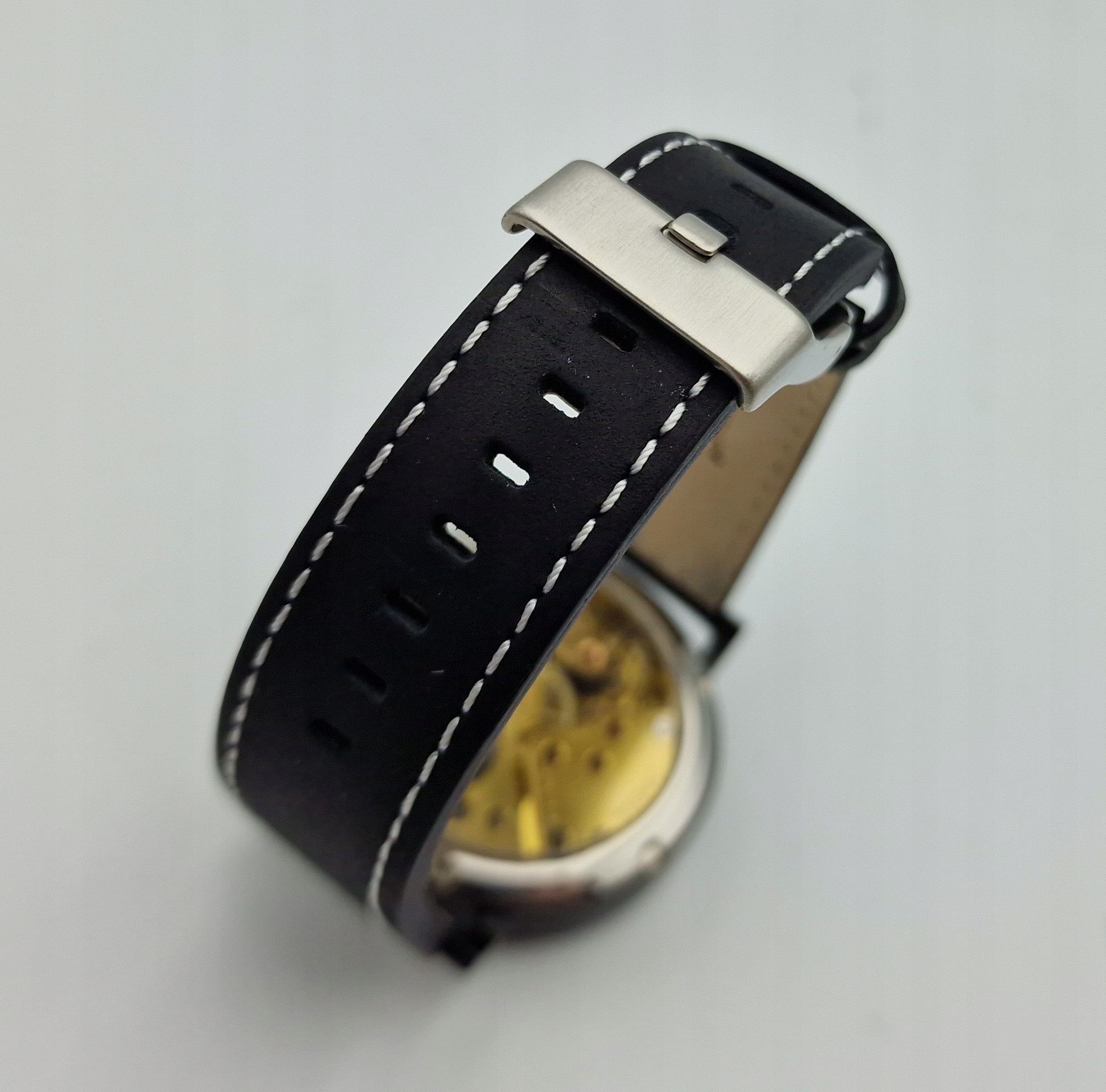 - Діаметр годинника 4,6 см без заводної головки та вушок, є ремінець. Висота з ручками 5,3 см. У комплект входить новий високоякісний шкіряний ремінь чорного кольору зі сталевою застібкою.