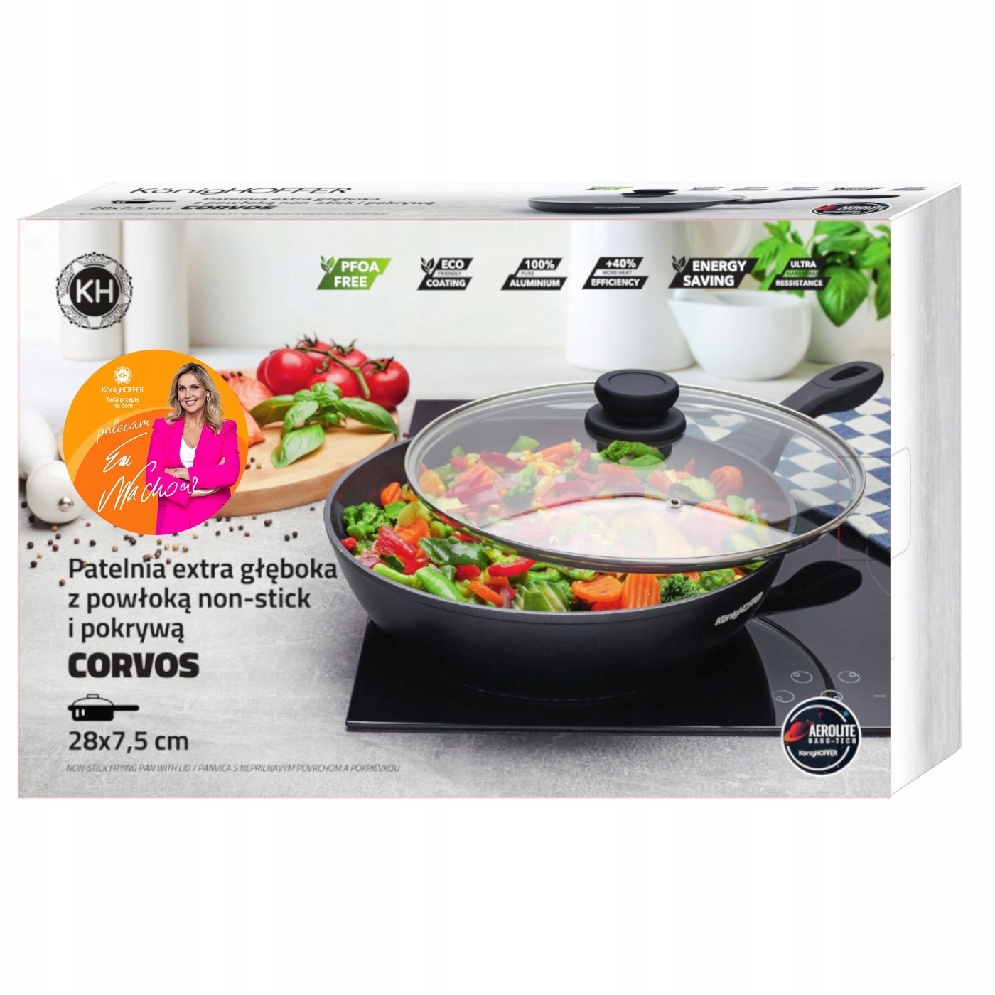 Duża PATELNIA INDUKCJA patelnia GŁĘBOKA NIEPRZYWIERAJĄCA 28cm Corvos