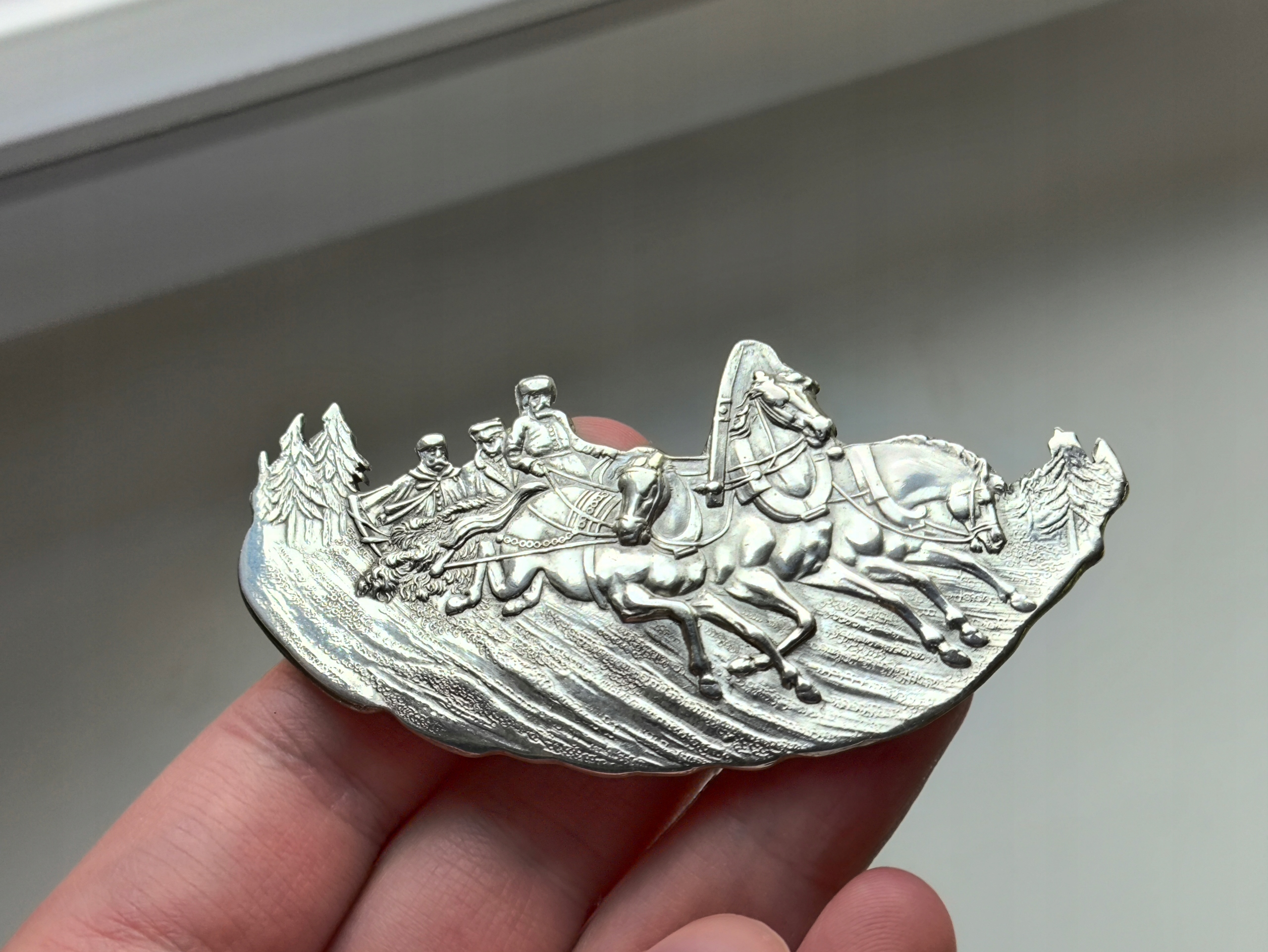 Duża pełnoplastyczna broszka TROJKA Carska Rosja srebro pr 84 - Rare !
