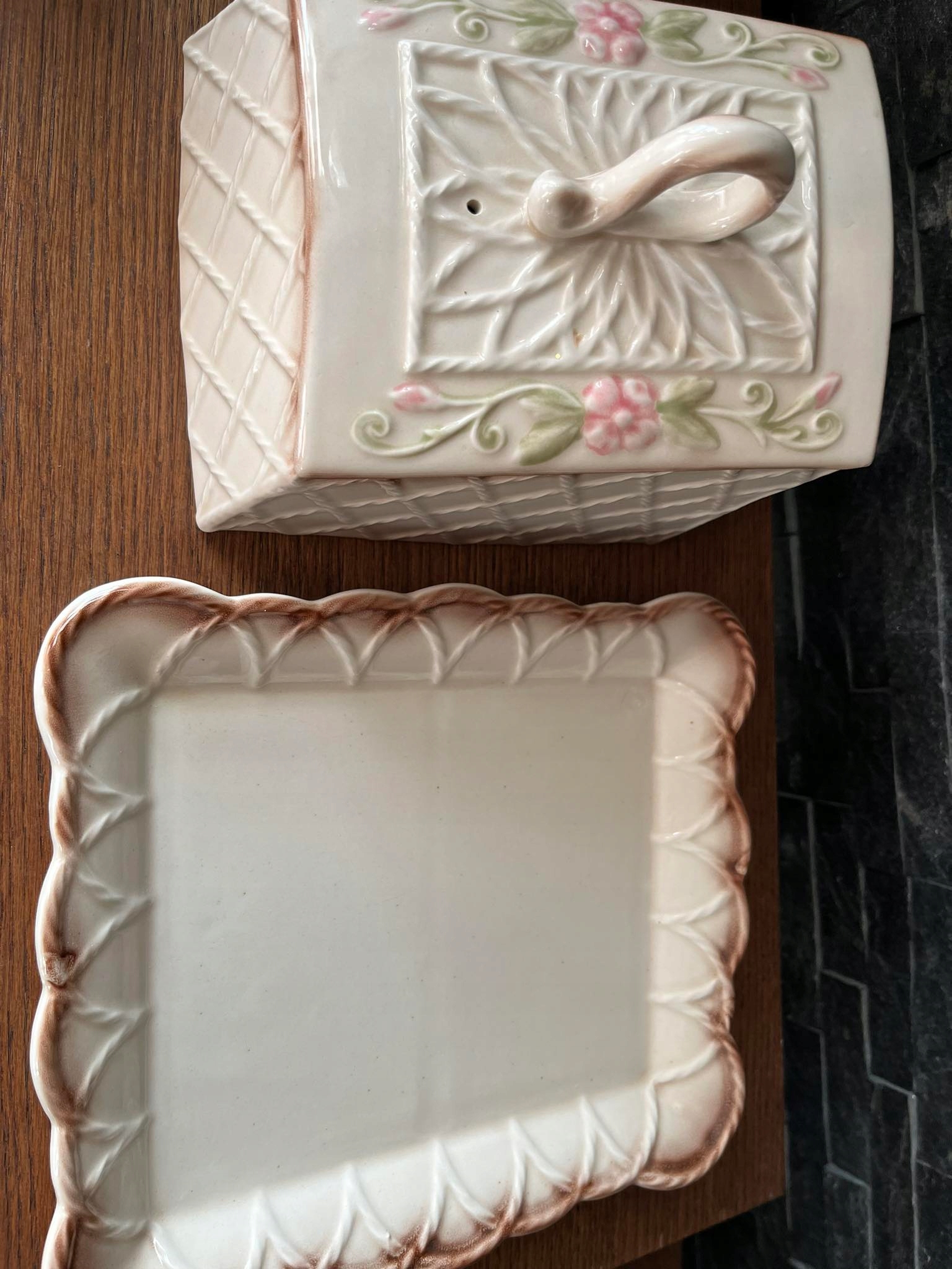 Duża porcelanowa serownica patera