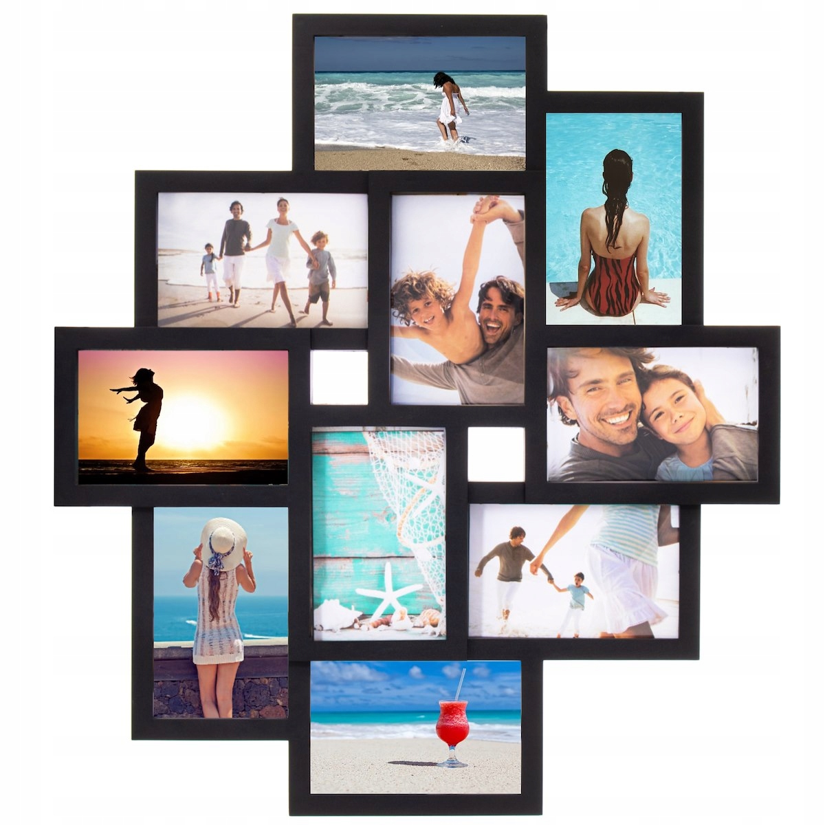DUŻA RAMKA 10 ZDJĘĆ FOTORAMA 48,5x53cm MULTI FOTO GALERIA KOLAŻ CZARNY