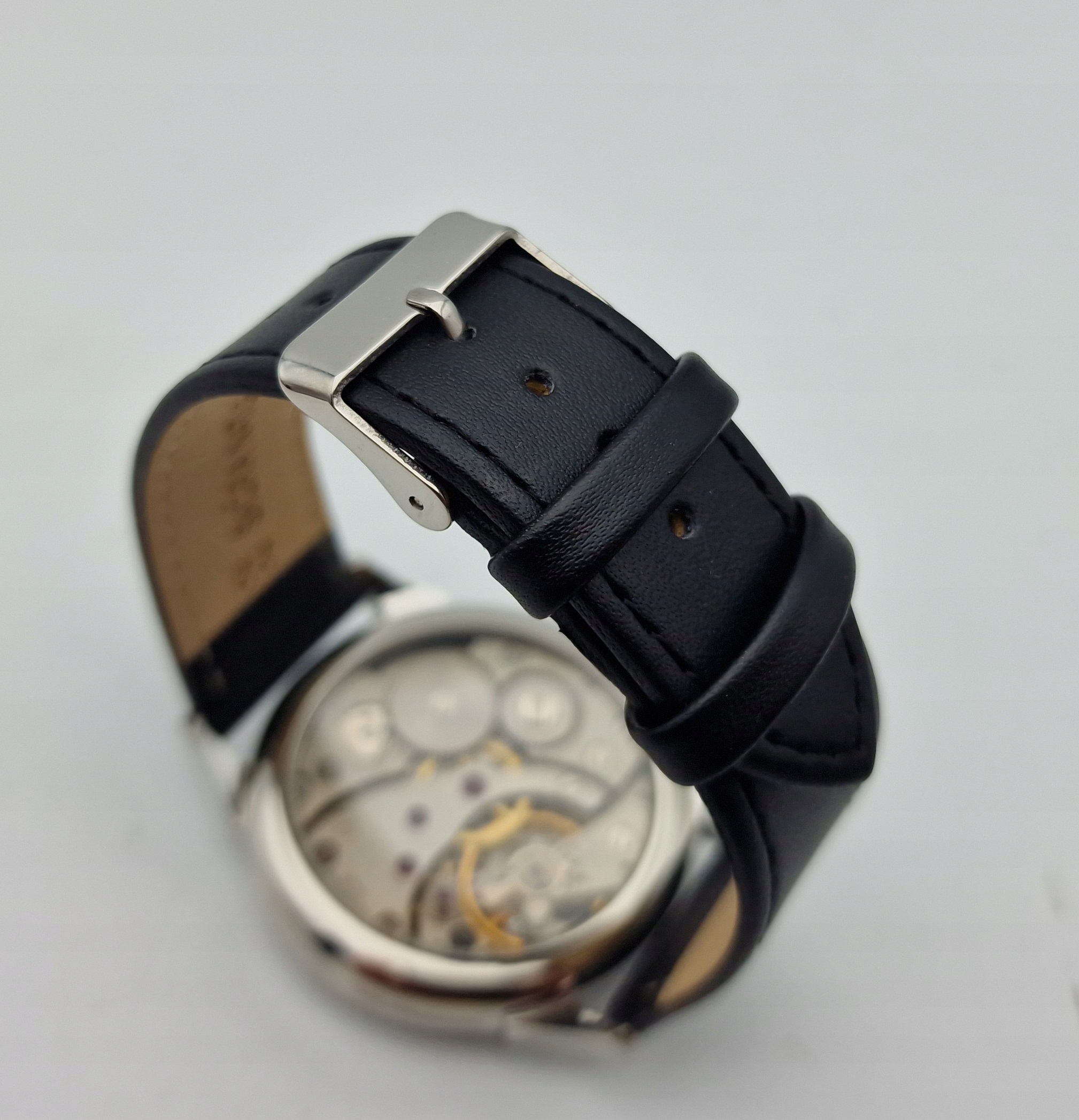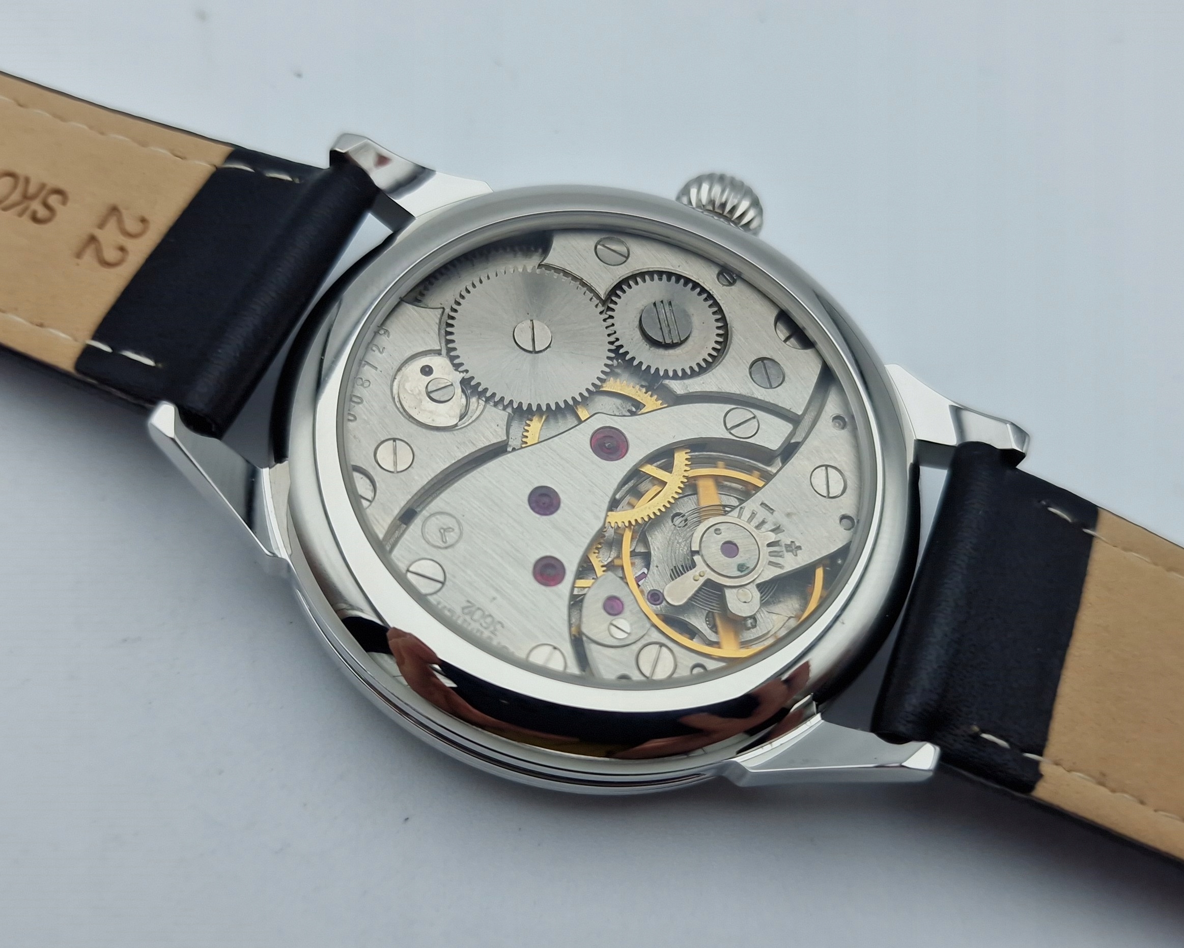 - Механізм годинника з 18 каменями, з анкерним спуском, з підписами: «18 STONES, 3202». Механізм працює добре та є точним після перевірки та обслуговування годинникарем.