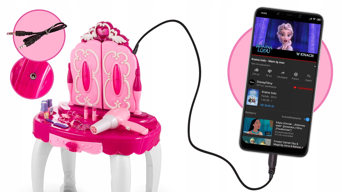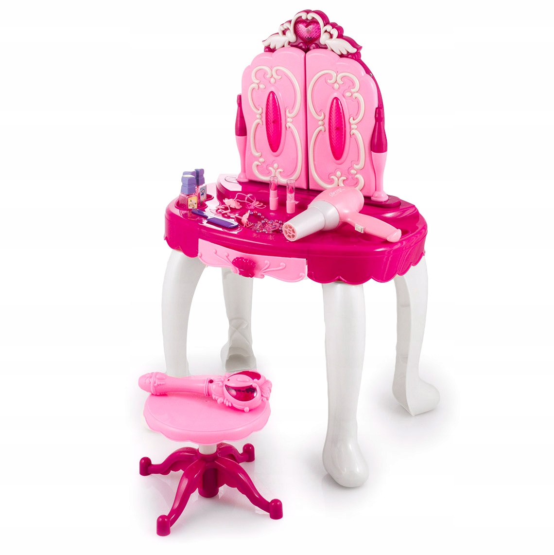 DUŻA TOALETKA DLA DZIECI DZIEWCZYNKI SUSZARKA DŹWIĘKI ŚWIATŁA MP3 STOLIK