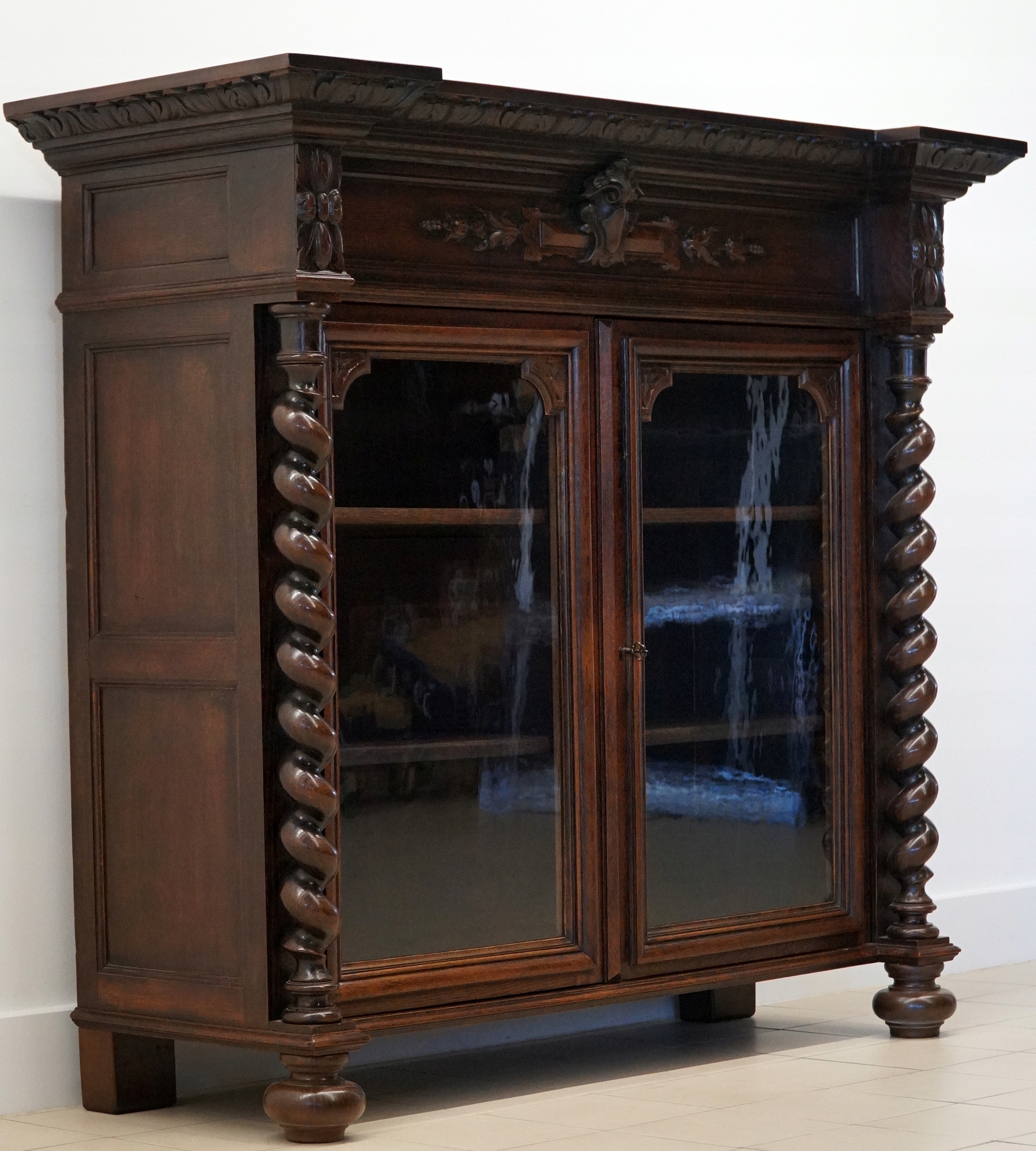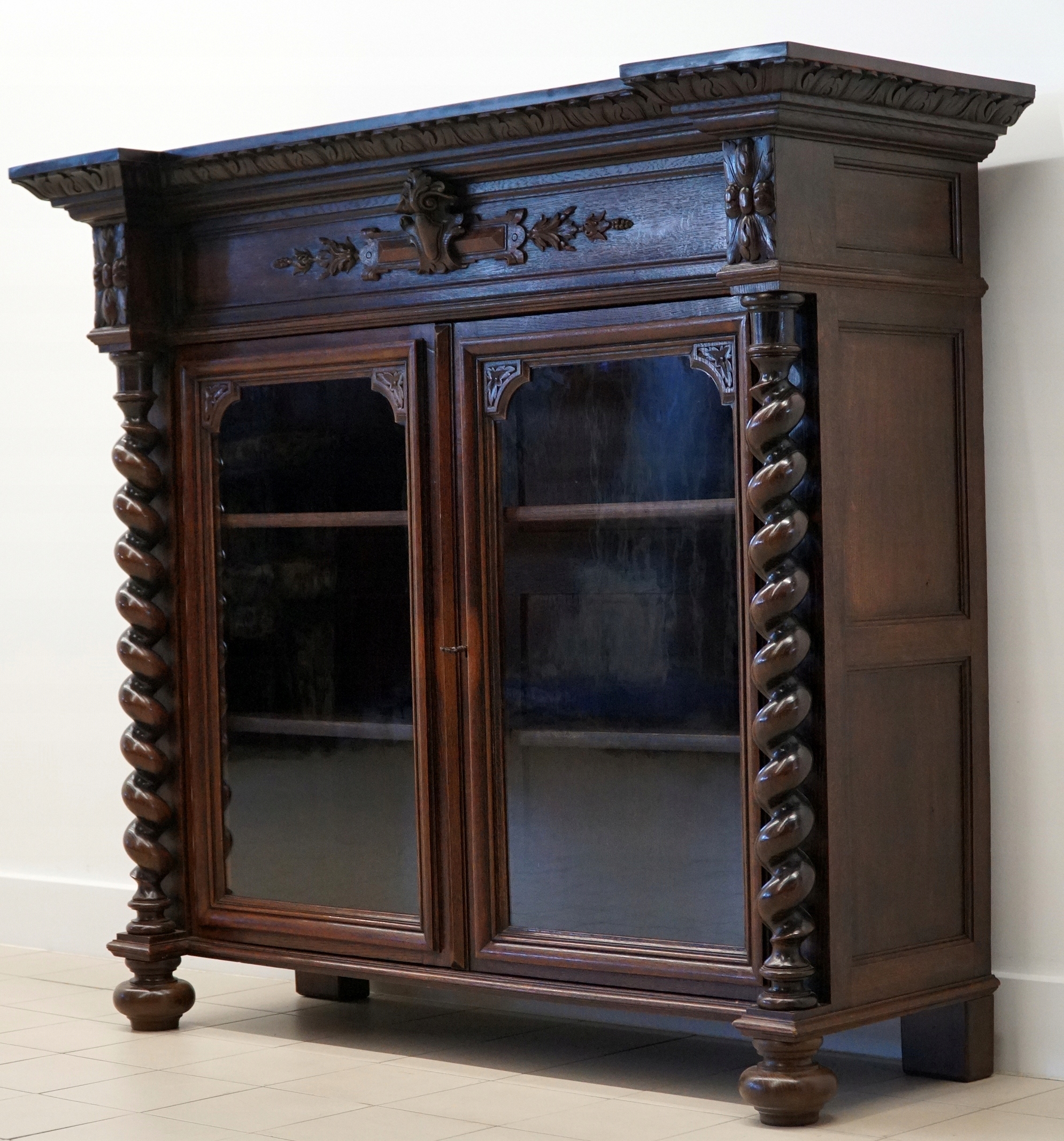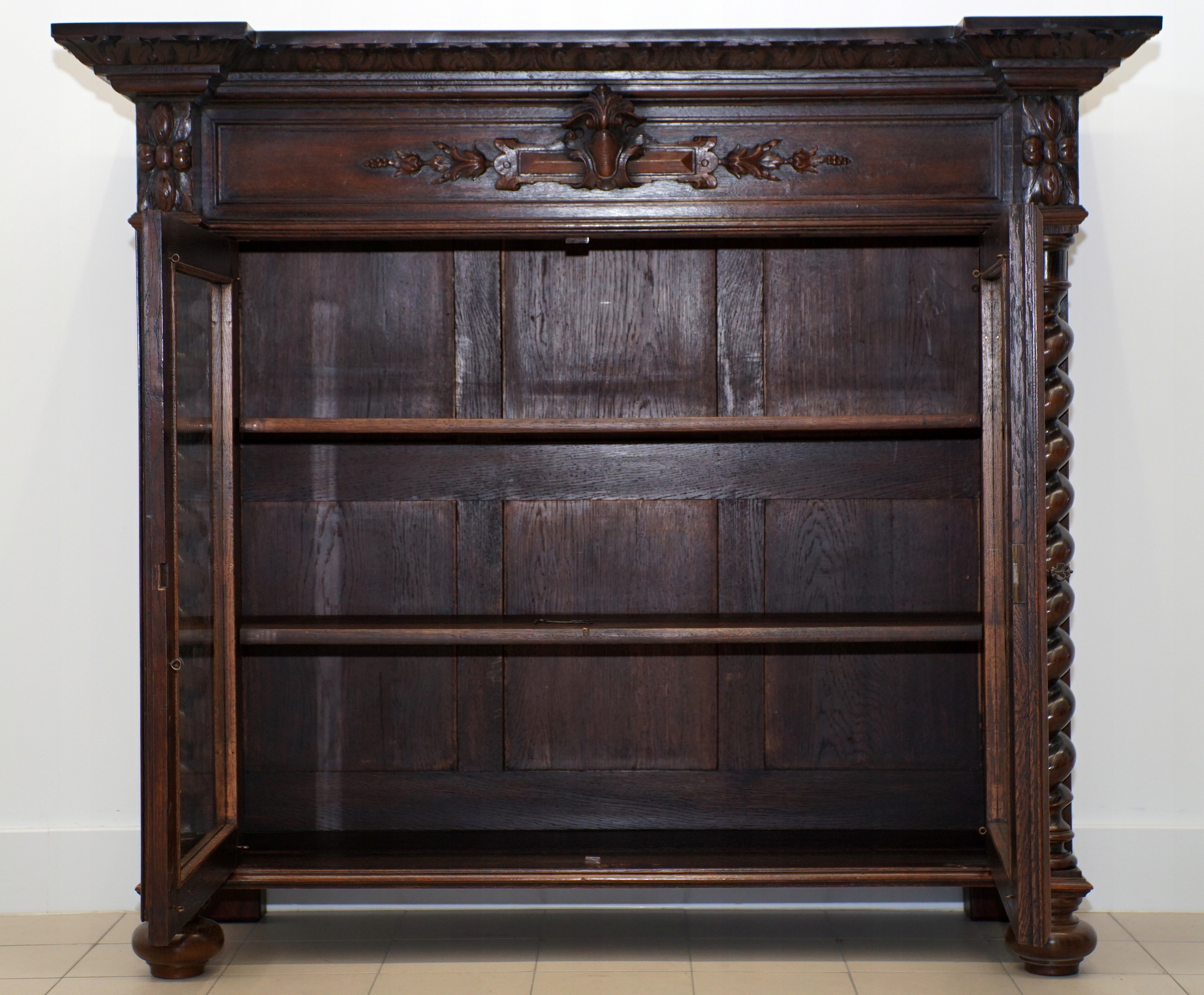 Вітрина в стилі неоренесансу, багато декорована довідкова бібліотека. Виготовлений з дуба. Походження Західна Європа, початок 20 століття. Замок працює, ключ в комплекті.