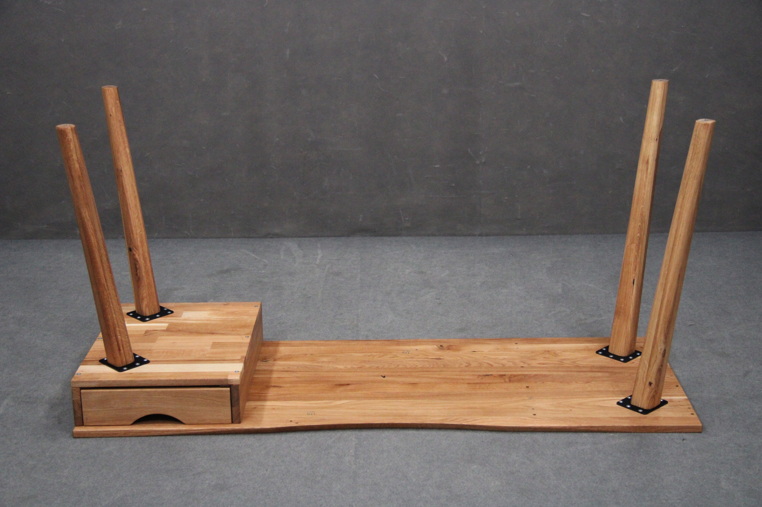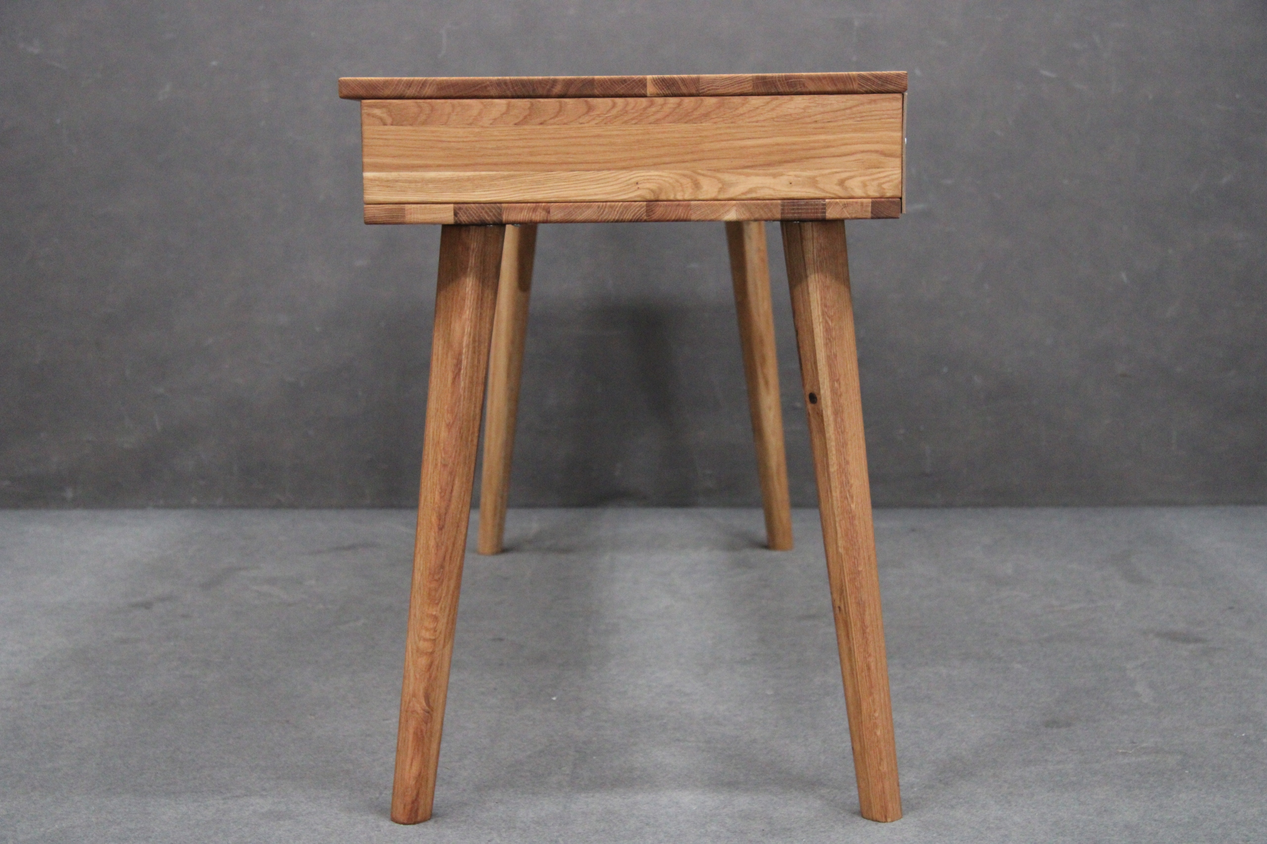 Стіл новий, повністю виготовлений із масиву дуба, укомплектований набором шурупів та інструкцією зі збірки (інструкцію також можна знайти у вкладці ДОДАТКОВА ІНФОРМАЦІЯ). Стіл невеликий, що робить його практичним, а його конструкція міцною та стійкою. Стіл оснащений висувним ящиком, який можна прикрутити зліва або справа під час складання. Це робить письмовий стіл універсальним. Відправляється одним пакетом, надійно захищений.