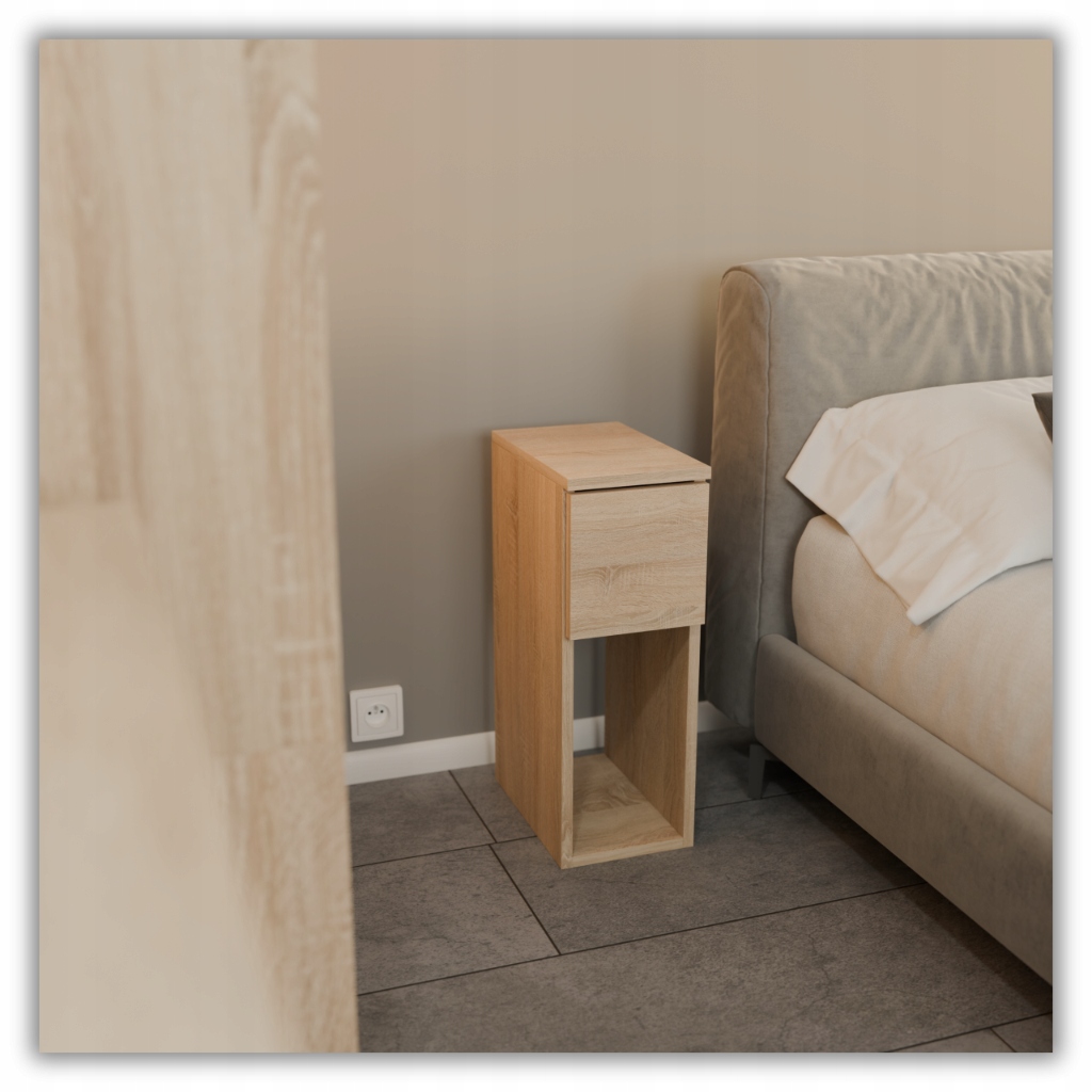 ДУБ СОНОМА ТУМБА ПРИЛІЖНА ВУЗЬКА 20 СМ ТУМБА З 1 ЯЩИКОЮ ДЛЯ СПАЛЬНІ
