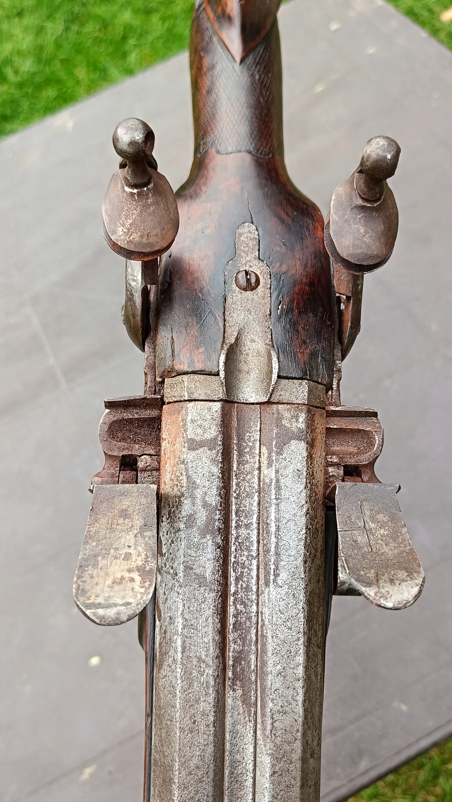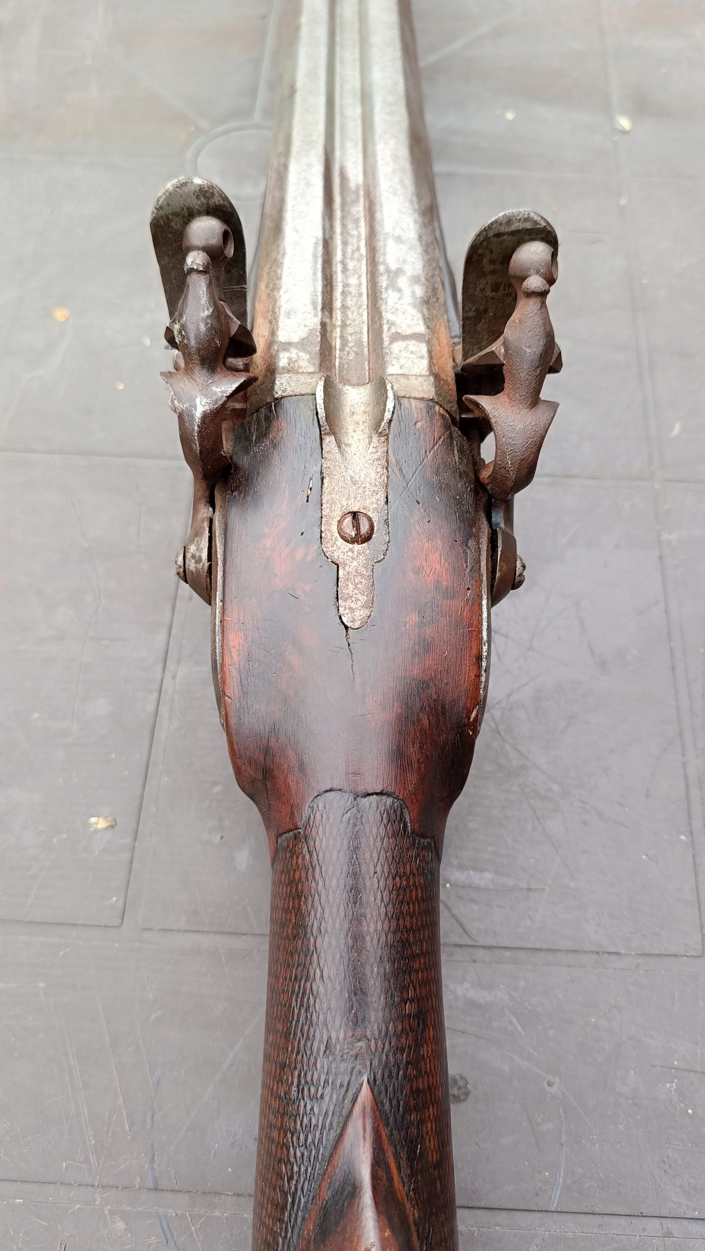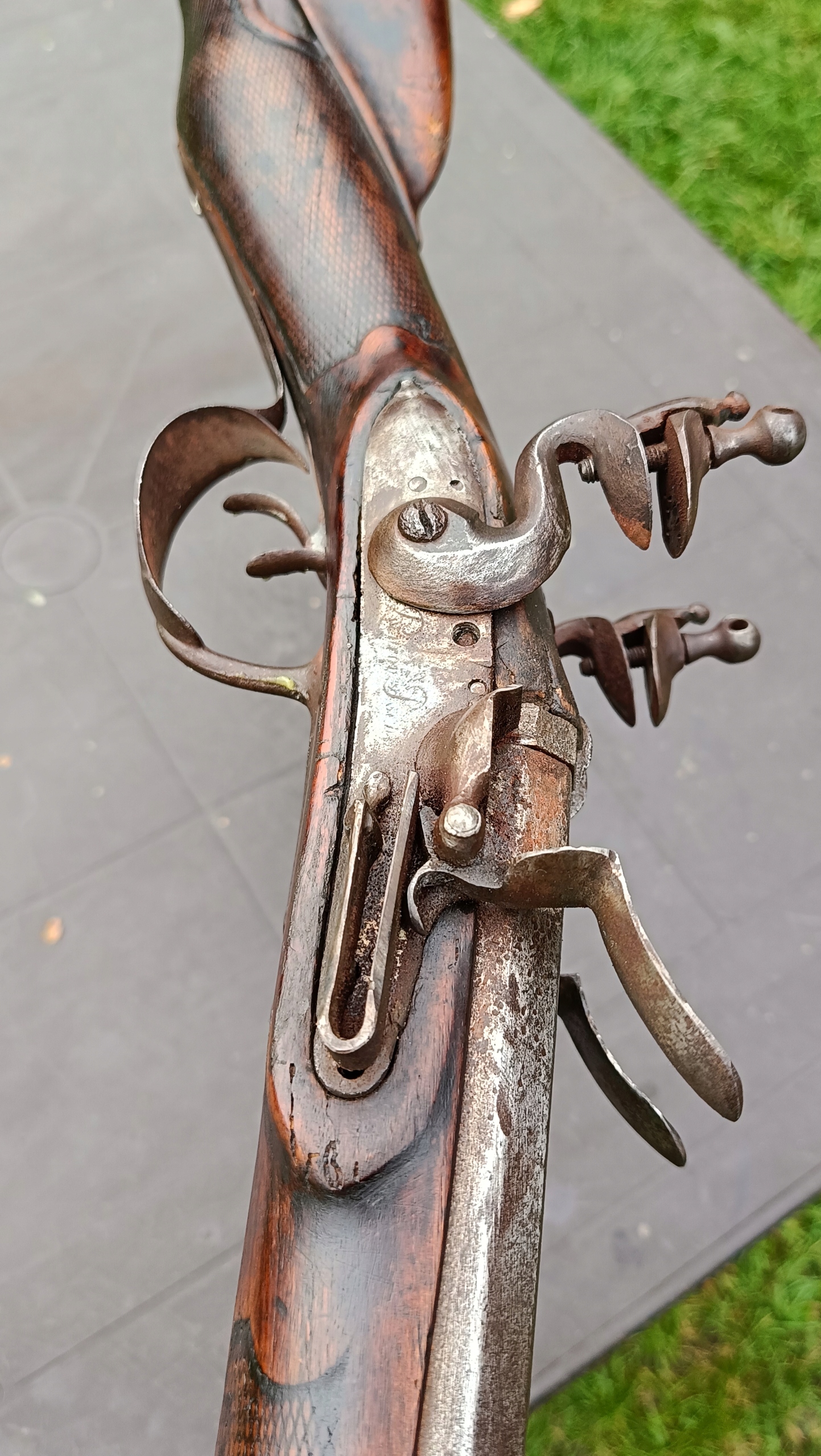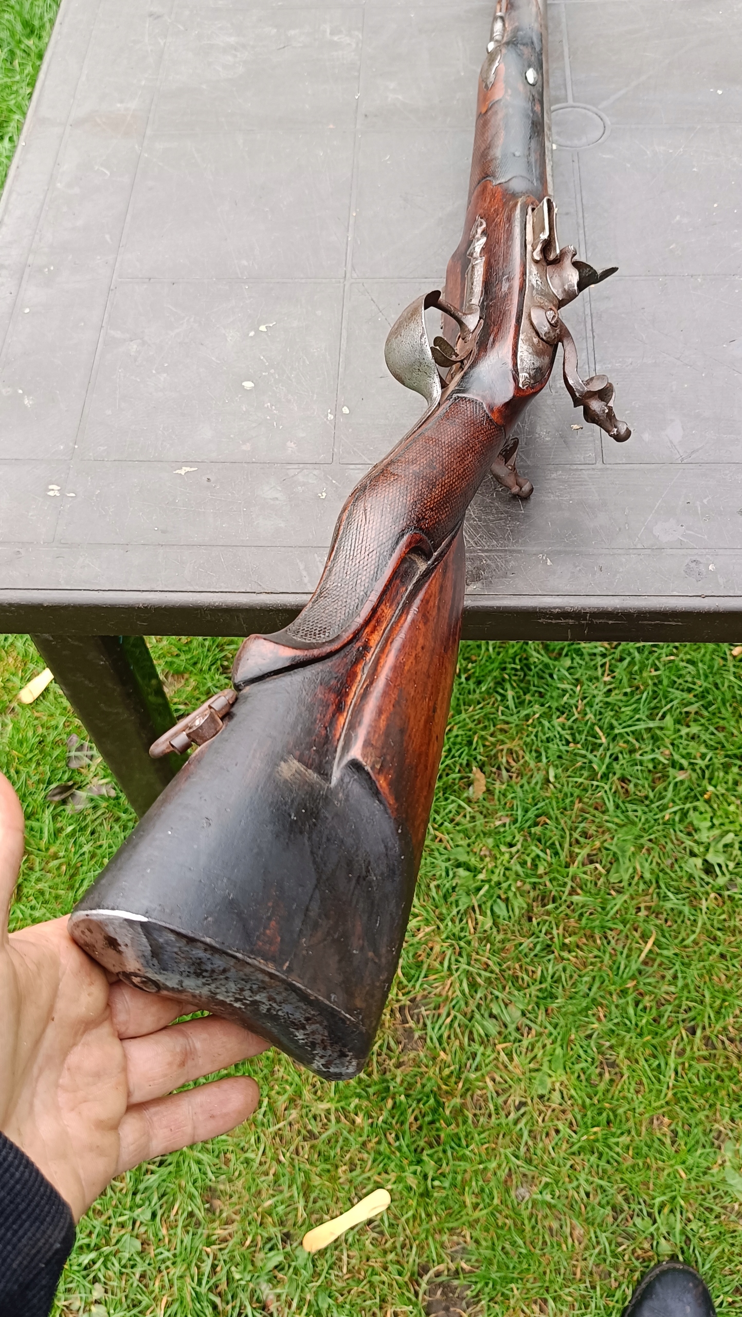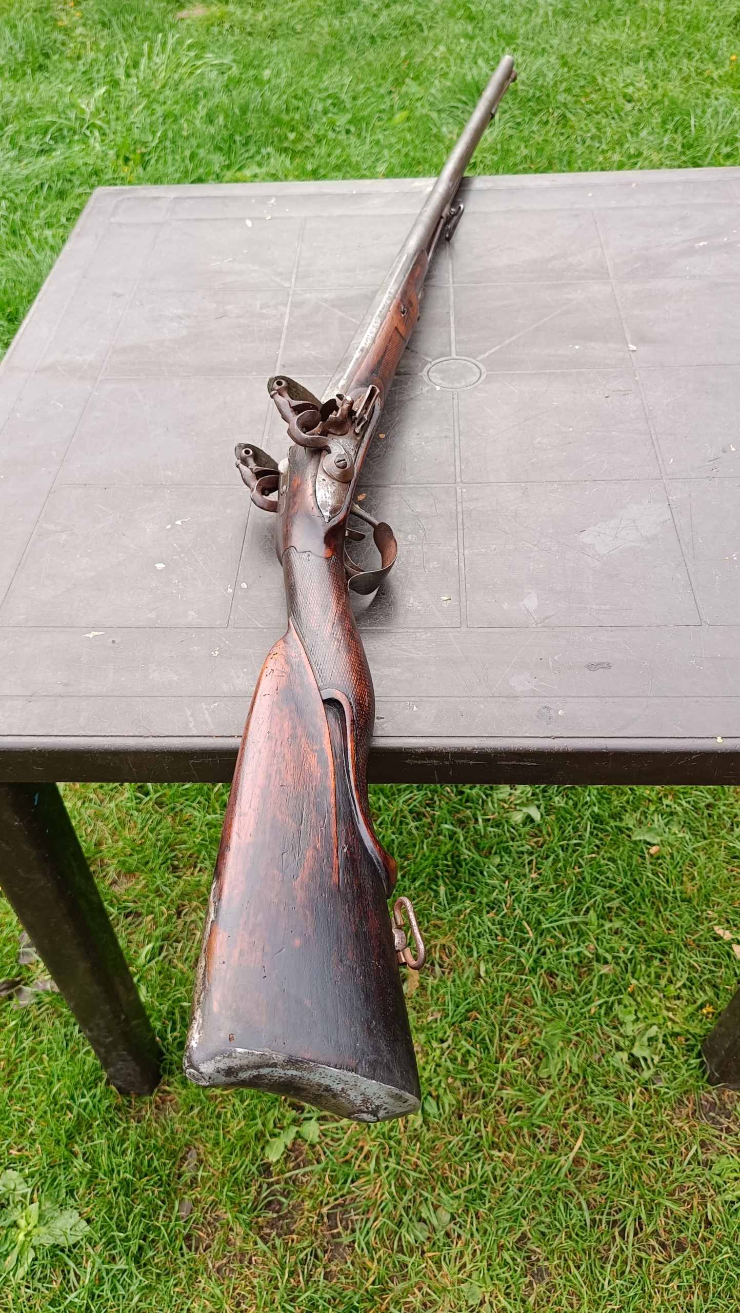 завантажений з фронту. Можна вистрілити сухий постріл, подвійне напруження. Замки працюють дуже добре. Пряма бочка в хорошому стані. Дерево не зламане в хорошому стані. Дуже приємна копія на стіні.