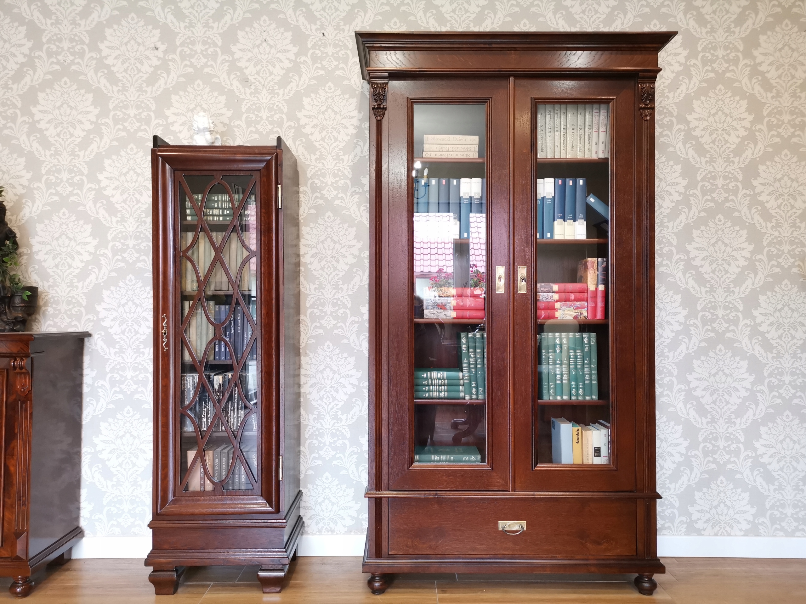 Усередині ви знайдете практичні полиці з регульованою висотою, які ідеально підходять для книг, емалі та інших прикрас.