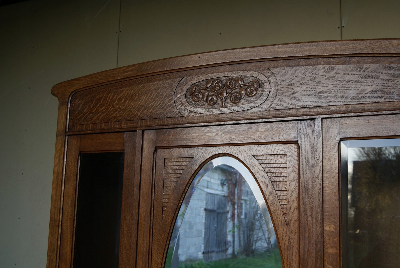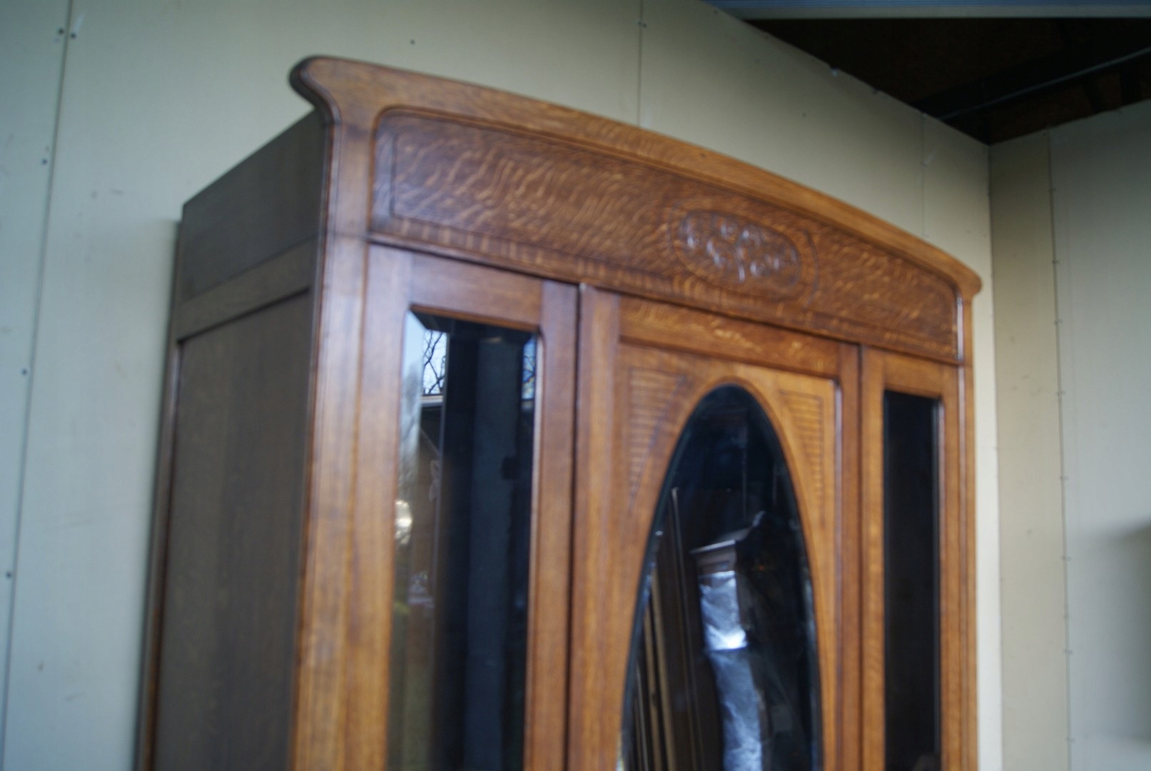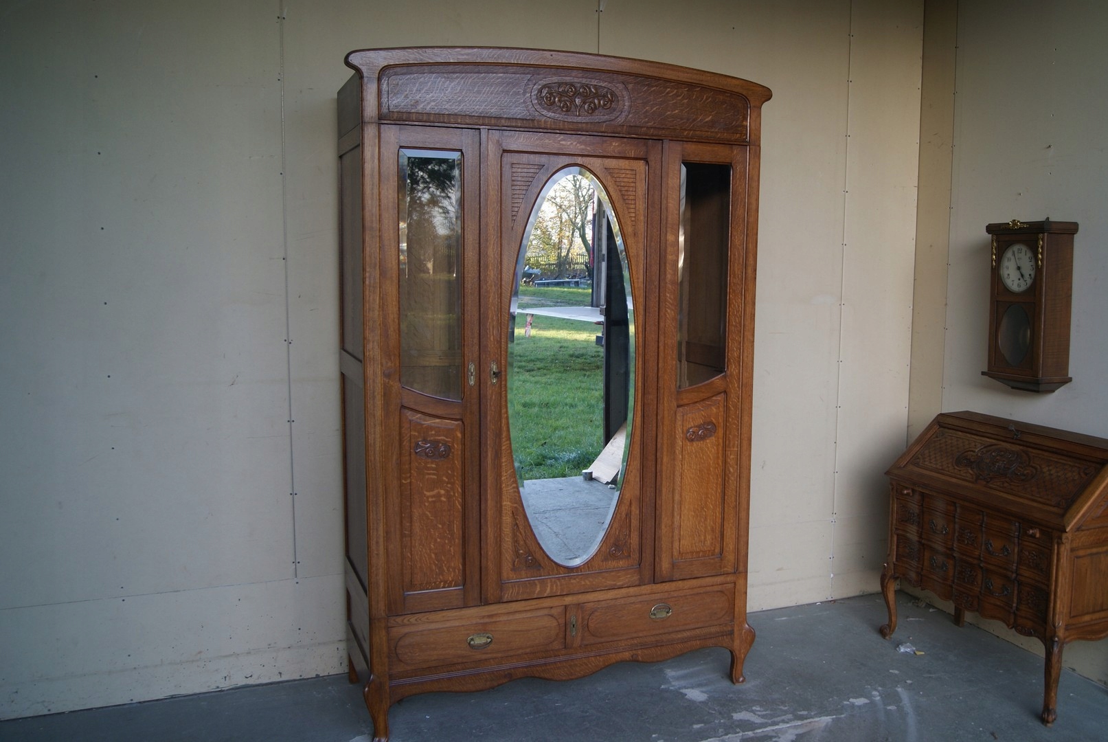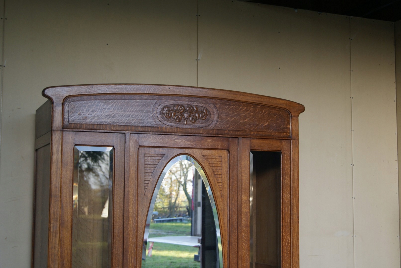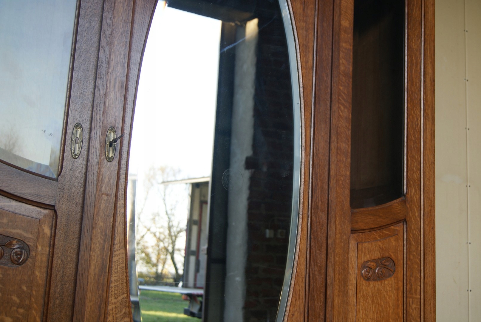 ДУБОВА РІЗЬБЛЕНА ШАФА З ОВАЛЬНИМ ДЗЕРКАЛОМ + СКЛЕННЯ - ШИРИНА 150 СМ