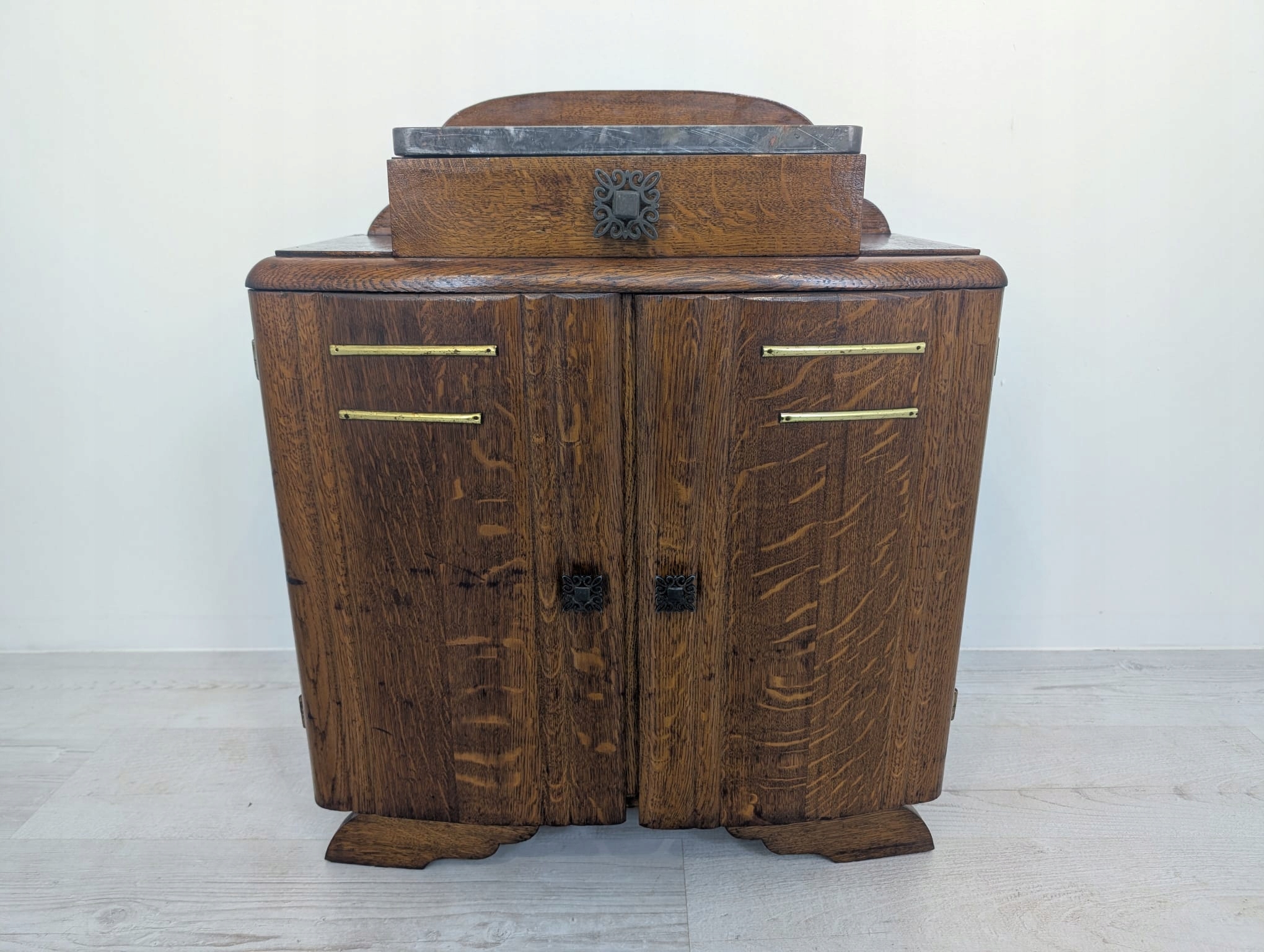 Стильний буфет з мармуру і дуба в стилі арт-деко. Конструкція з масиву дуба та красива мармурова стільниця надають цьому предмету меблів елегантний і позачасовий вигляд. Ідеально підходить як доповнення до сучасного або класичного інтер’єру.