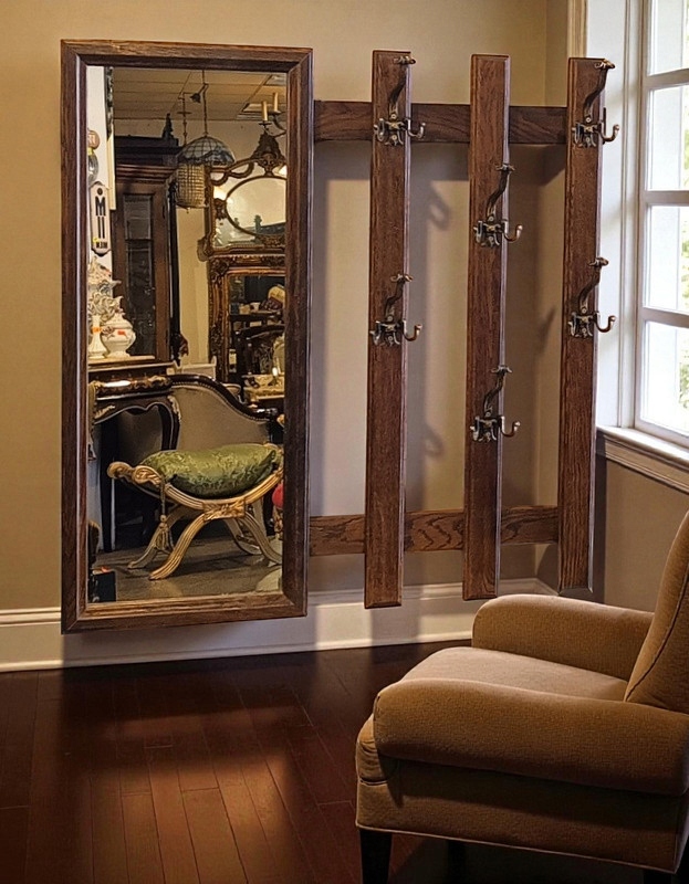 Дубова вішалка в сільському стилі з дзеркально кованими гачками