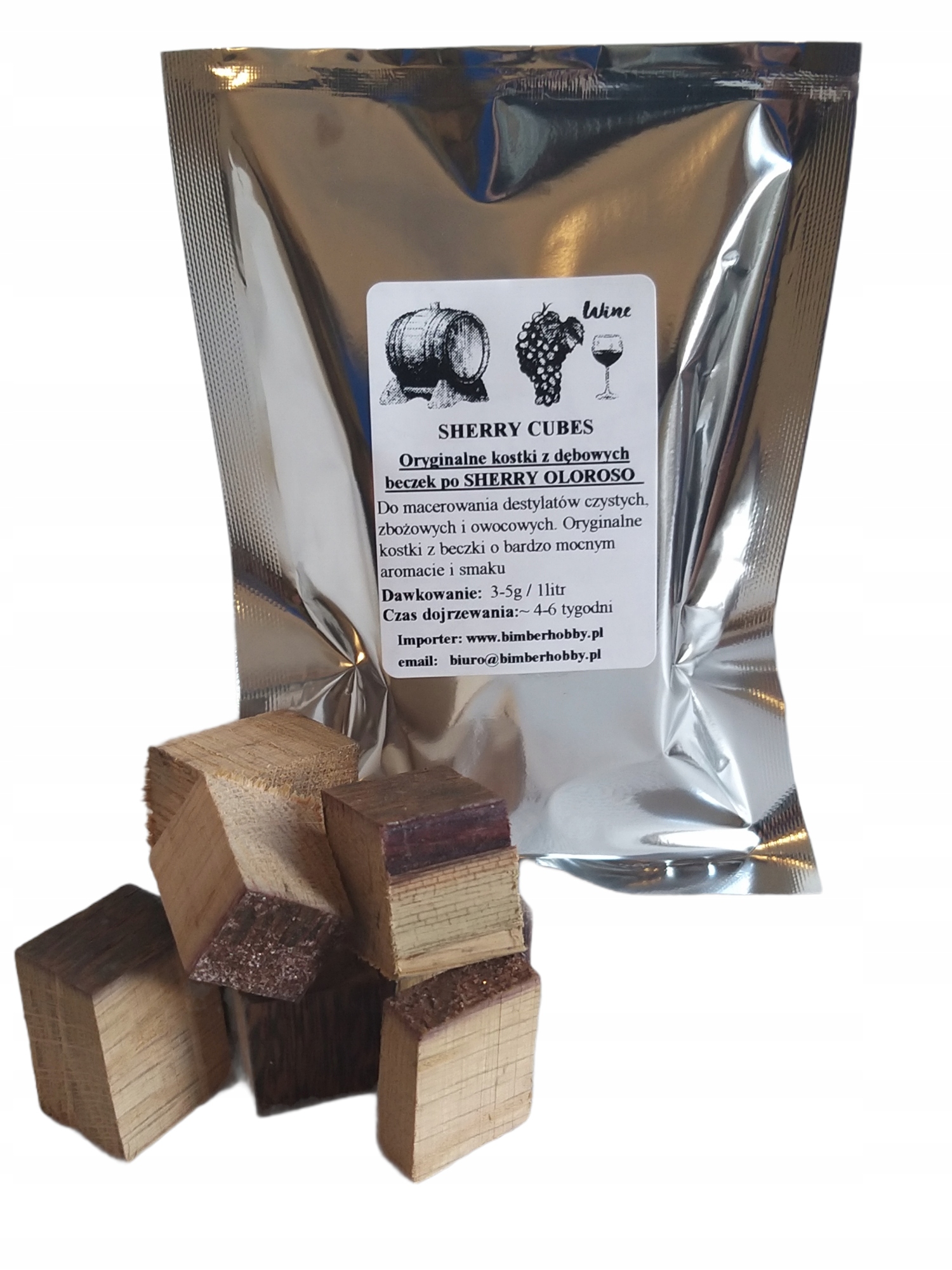 Шеррі Олоросо. Кубики мають надзвичайний аромат і властивості. Вони ідеально підходять як для витримки, так і для дозрівання міцних напоїв, таких як чисті горілки, домашні коньяки, винні спирти, віскі, бренді, сливовиця, лікери. Дубові кубики SHERRYCUBES також цінують любителі нестійких домашніх напоїв, таких як вино, пиво чи медовуха, за їх витримку та надання чудового аромату та кольору.