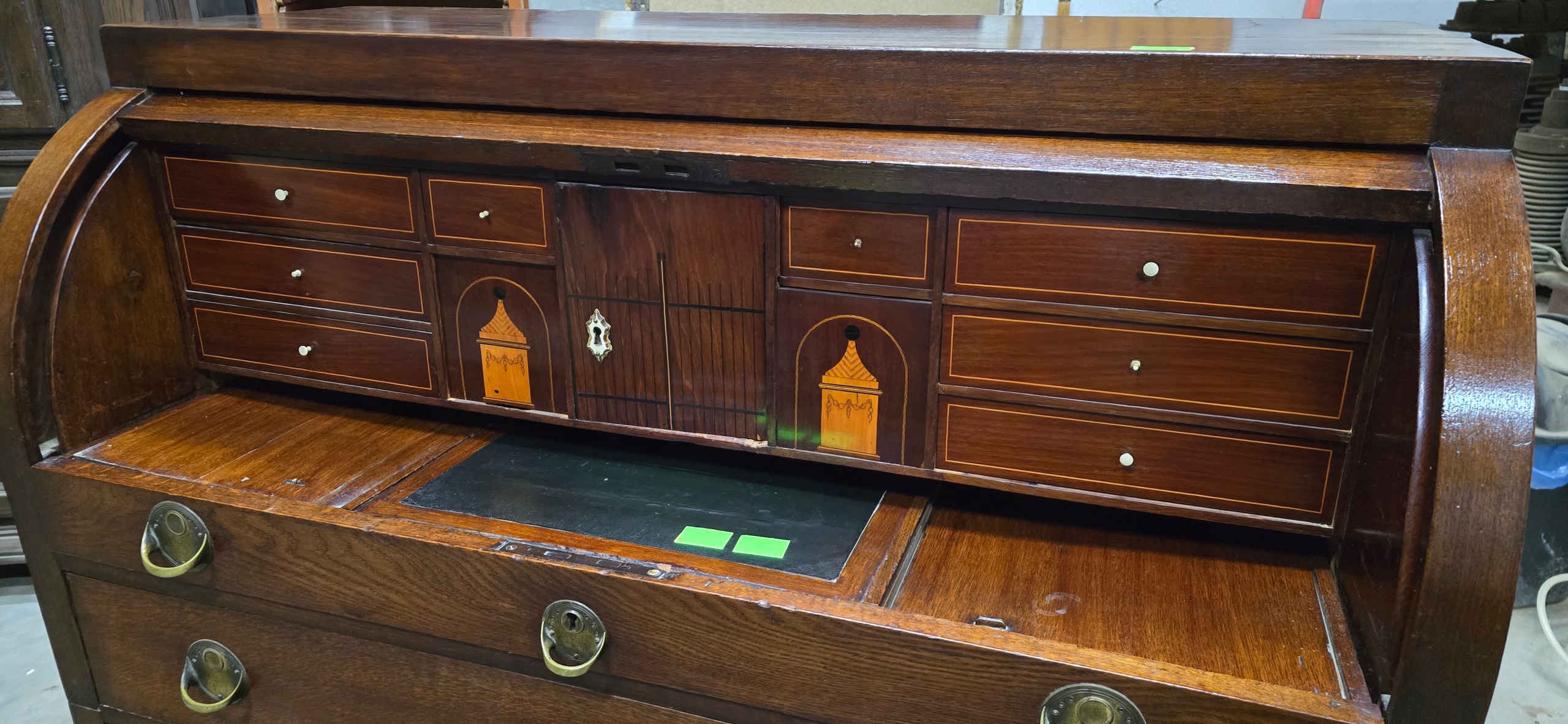 Дубовий циліндричний секретер кінця 19 століття, бідермаєр бароко