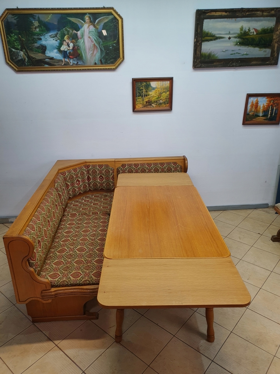 Усі меблі зберігаються в дуже хорошому стані, видно на знімках, акуратно. Кут був прекрасно закінчений і може виглядати ідеально у вітальні чи кухні зі столом.