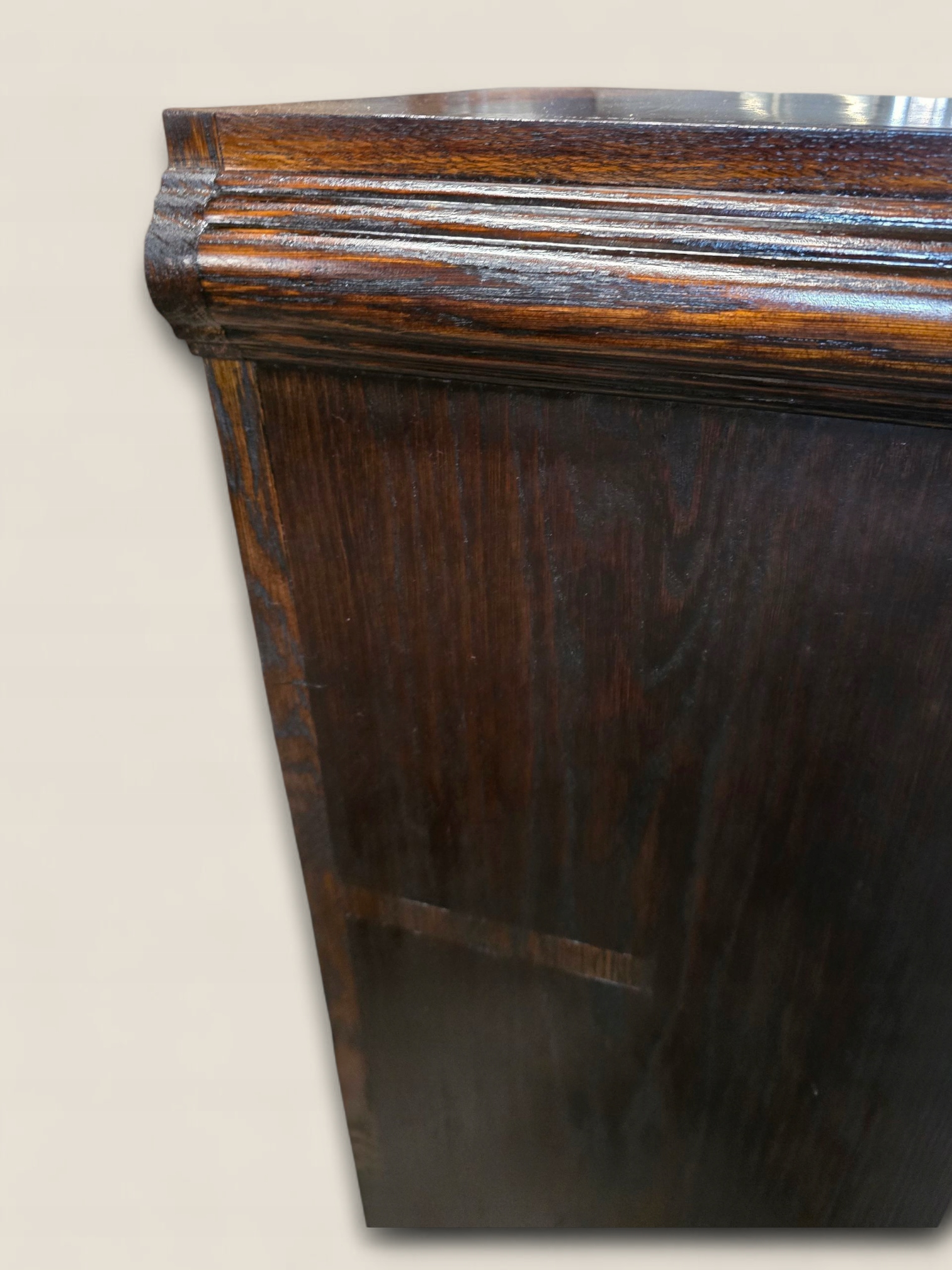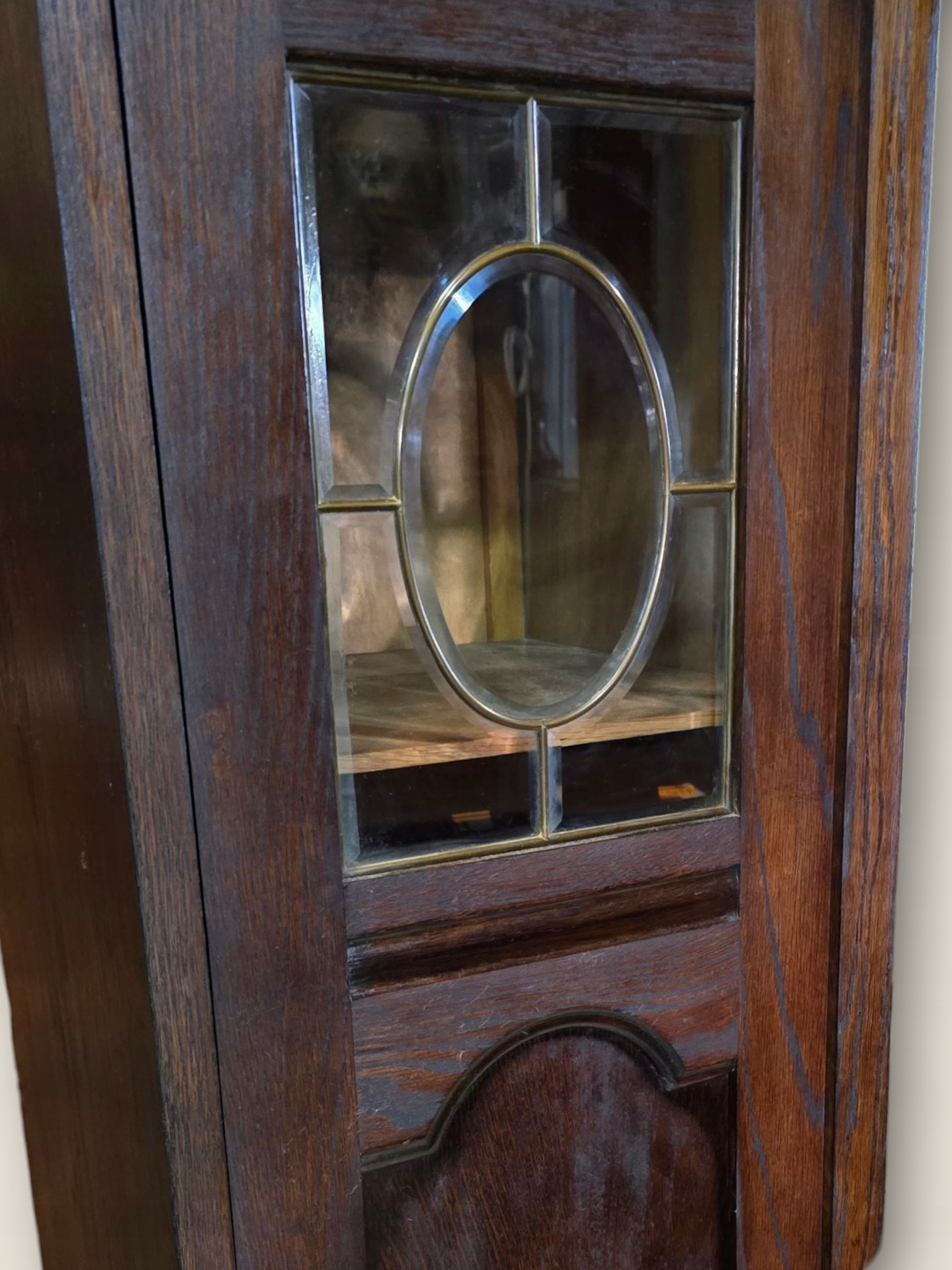 Меблі класичної, простої форми, з декоративною передньою частиною та оригінальним кришталевим вітражем у верхній частині.