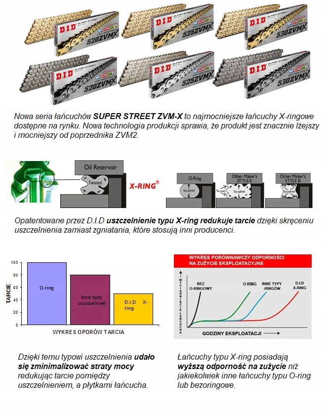 ланцюг DID520ZVM-X (X Ring) присвячений мотоциклам з максимальною ємністю до 1200 см.