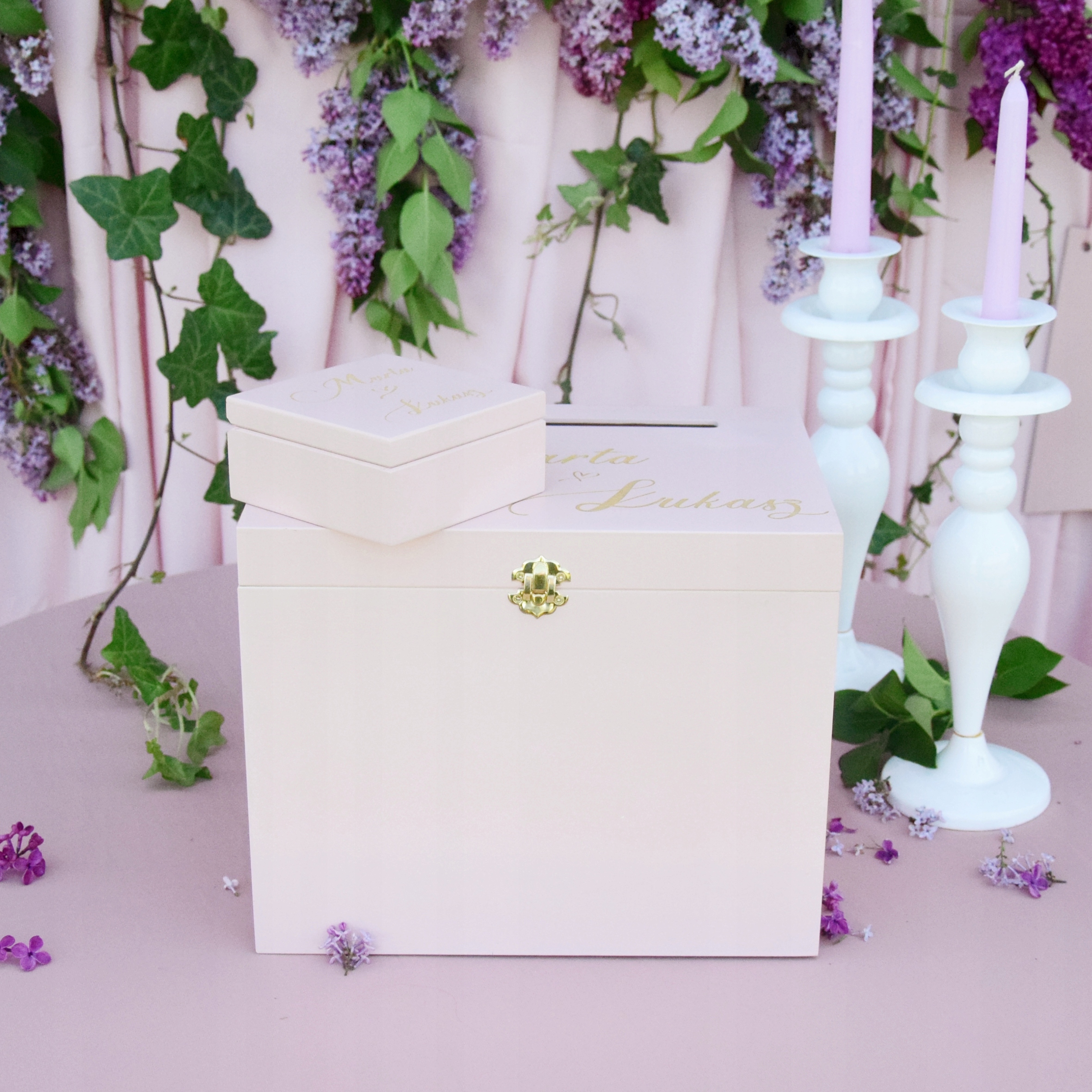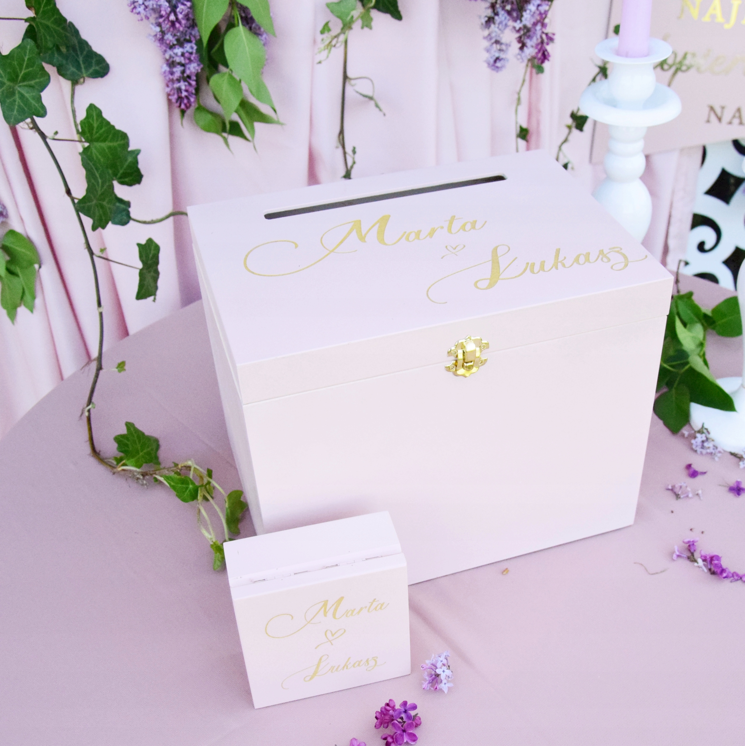 Обидва предмети в елегантному стилі. Ви можете вказати свої імена та дату на коробках.