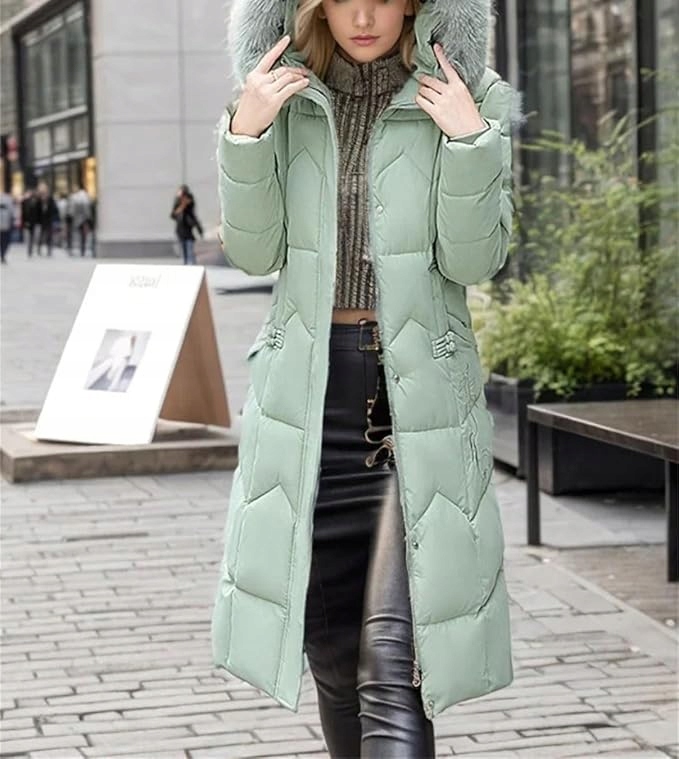 DŁUGA KURTKA DAMSKA ZIMOWA PIKOWANA Z KAPTUREM CZARNA ty3093