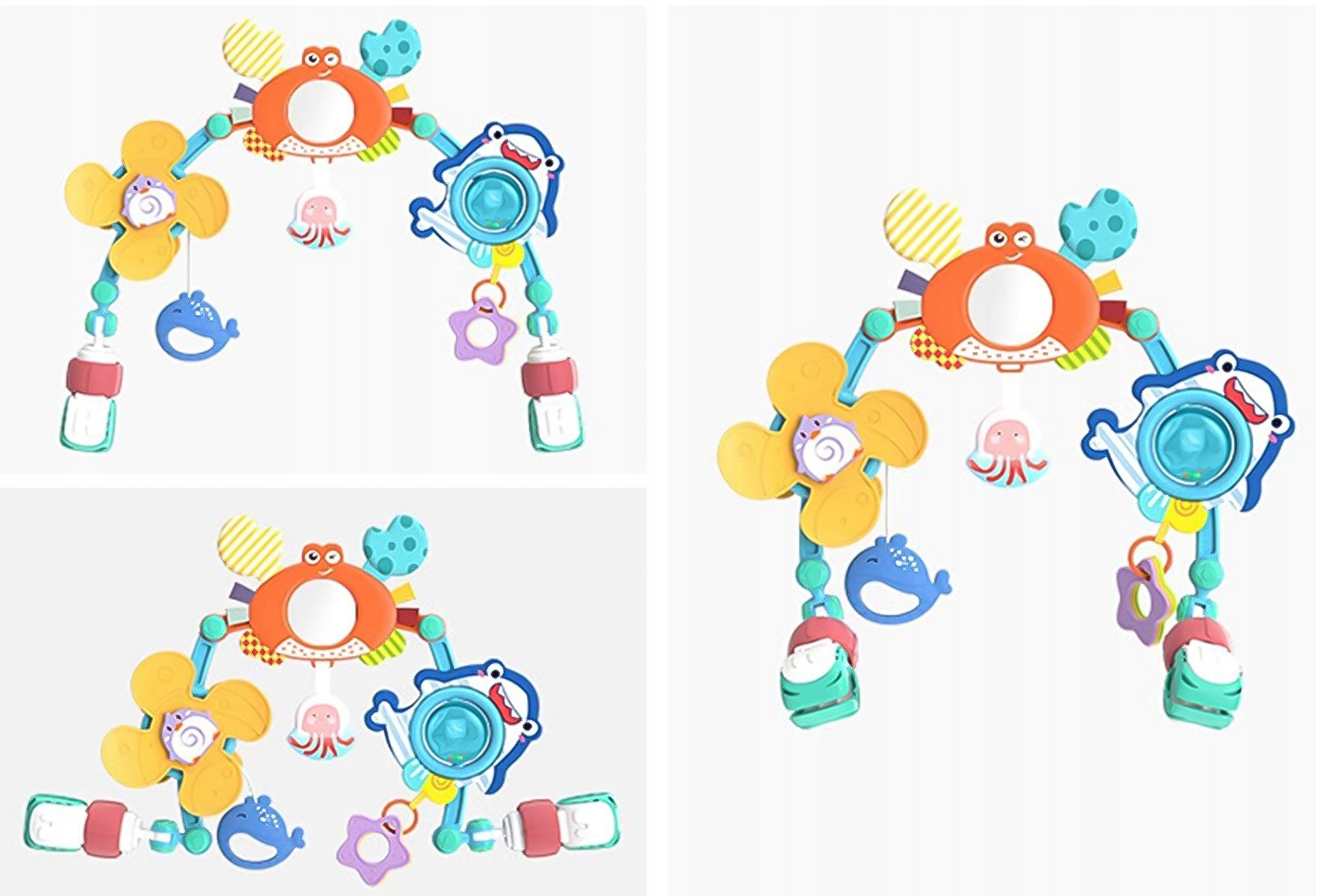 4 Наш продукт ідеально підходить для візки, сидіння, шпильки, стільців та ліжок і буде зацікавити кожного малюка. Метод кріплення дуже швидкий і простий! Пов'язка на голову має спеціальні засувки, з якими ви можете надати правильну форму, адаптовані до наших потреб. На обох кінцях є регульовані гачки, які ми можемо прикріпити пов'язку на голову до ліжки/візки тощо