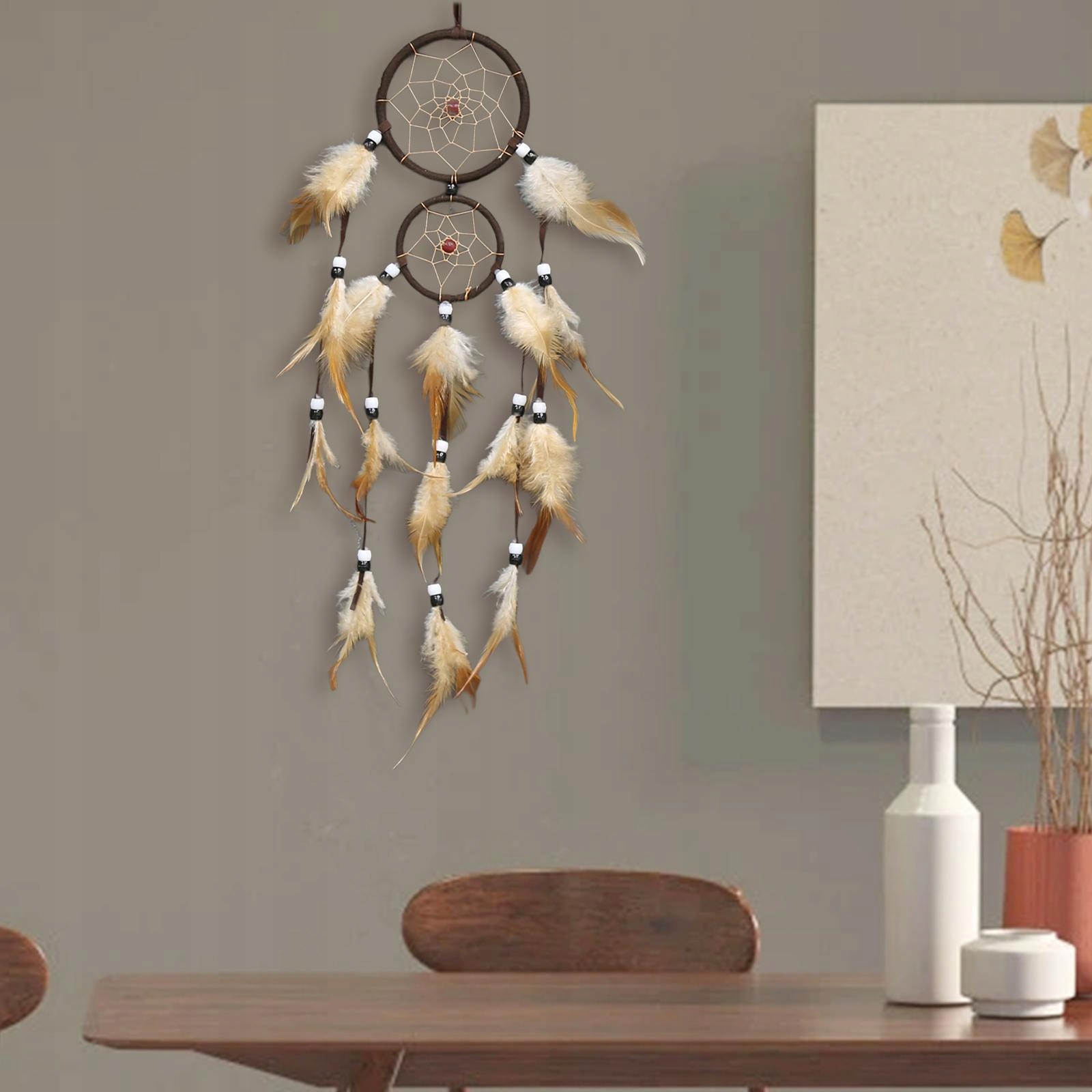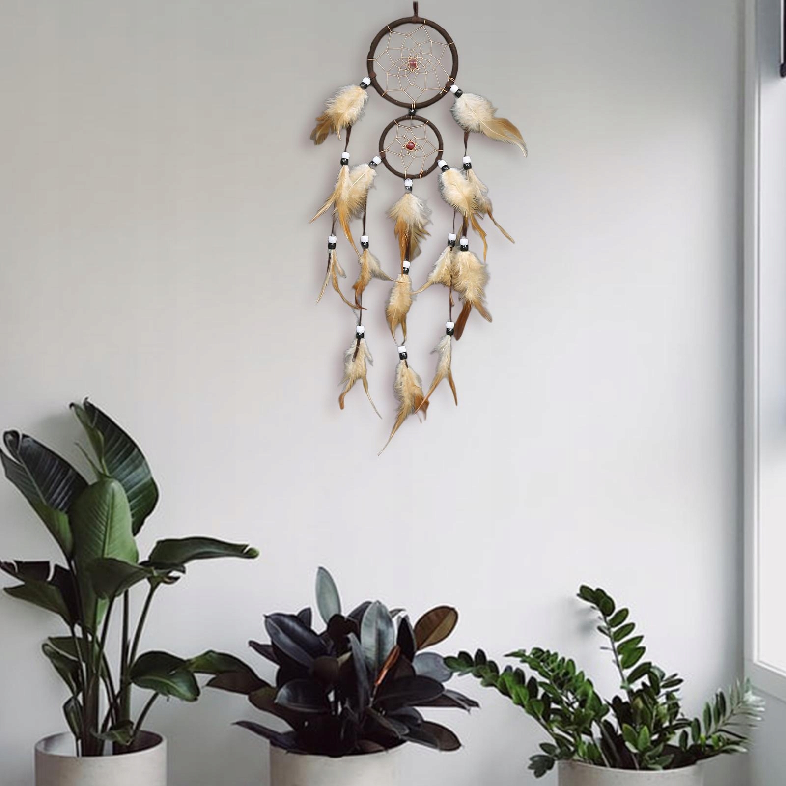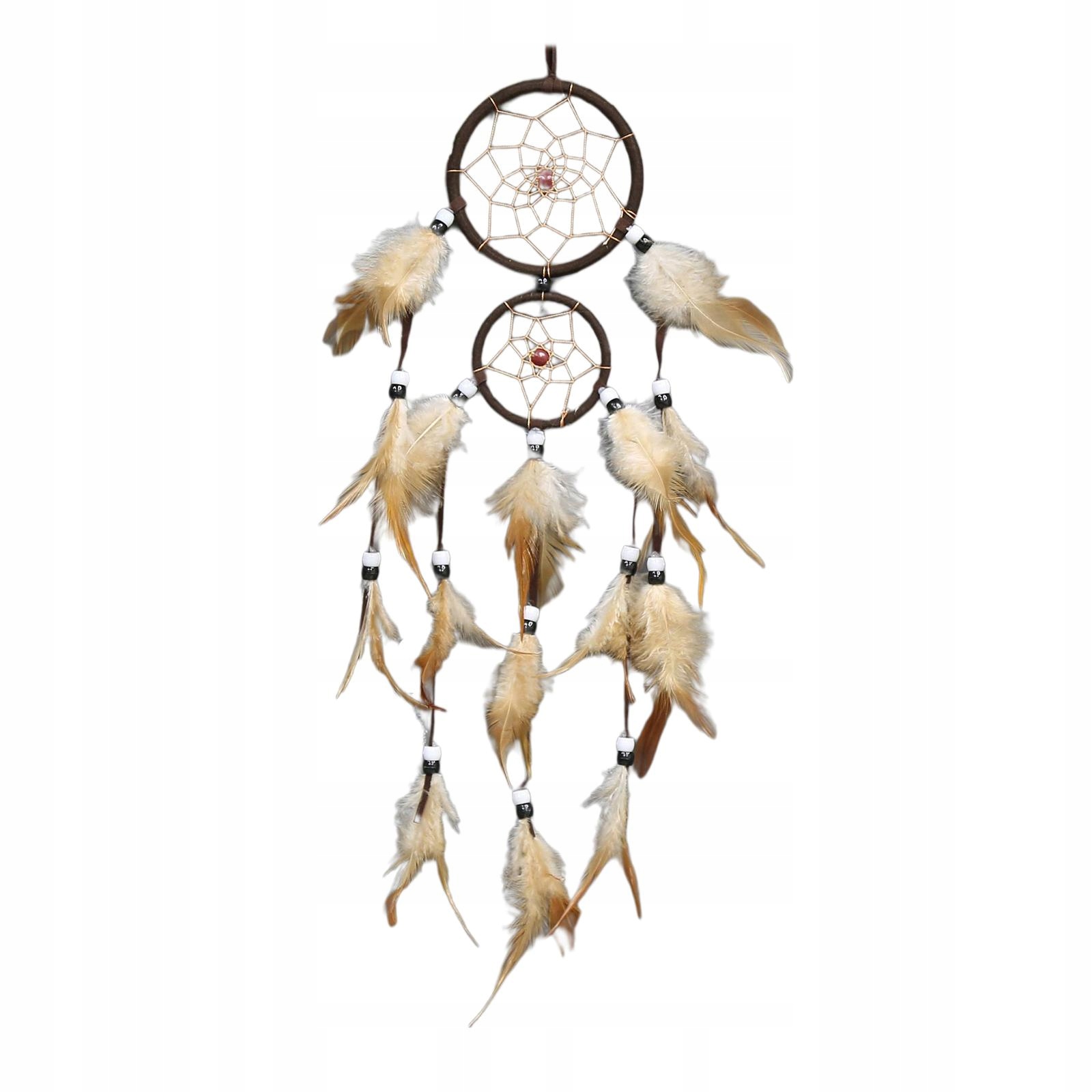 Długie podwójne kółko z zawieszką ścienną z piór do domu Ciemnobrązowy