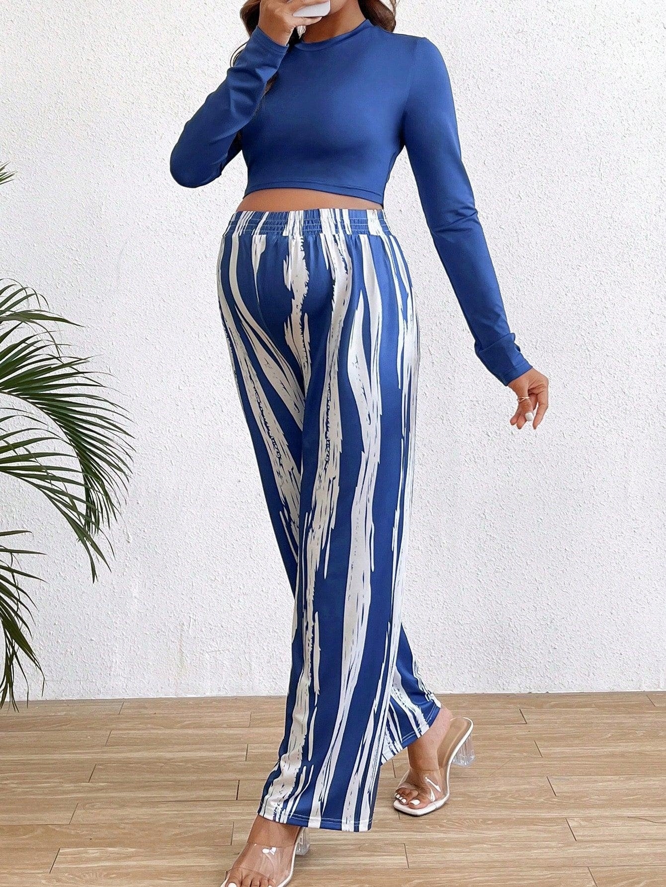 DŁUGIE PROSTE SPODNIE SHEIN 40 NIEBIESKI KOMPLET CIĄŻOWY DOPASOWANY TOP