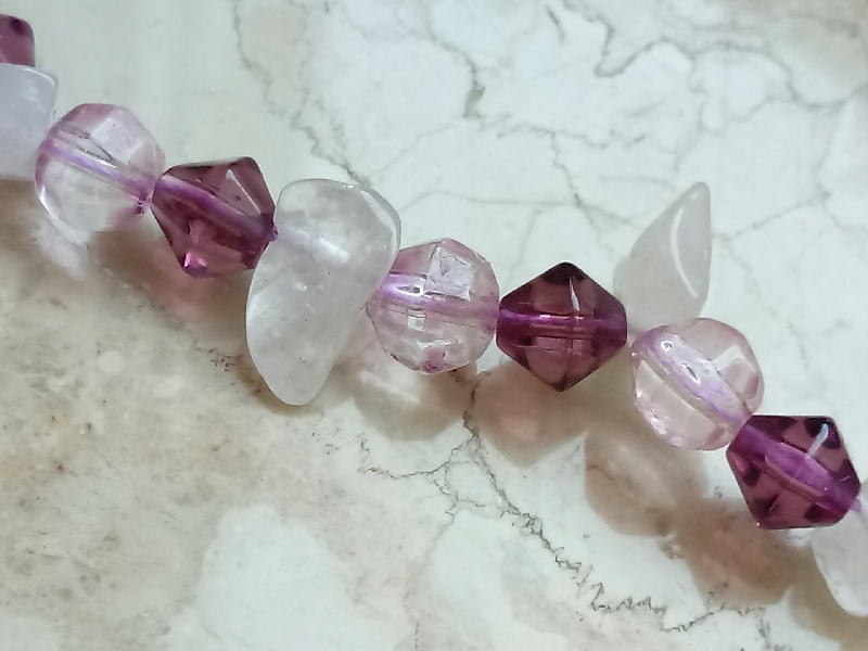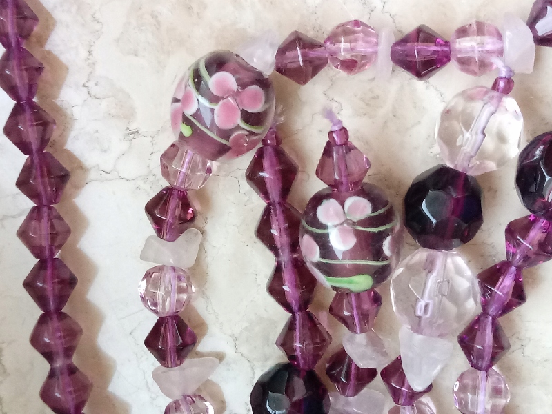 Długie szklane fioletowe liliowe korale szkło naturalny kamień długi wisior