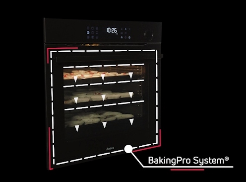 Новий дизайн внутрішньої частини духовки гарантує точний розподіл тепла по всій камері, завдяки чому страви пропікаються рівномірно на всіх рівнях.