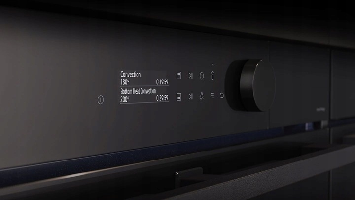 Комфортне керування духовкою завдяки інтуїтивно зрозумілому персоналізованому управлінню. Мінімалістичний дизайн пропонує стильну панель керування, оснащену 2,25-дюймовим РК-дисплеєм, сенсорним управлінням і однією ручкою. На основі моделей використання пристрій представляє найбільш часто використовувані режими, що дозволяє швидко вибирати.