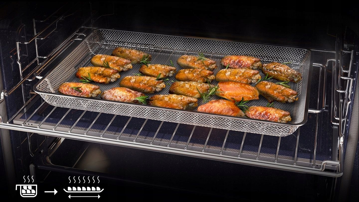 Здоровіша смажена їжа без фритюрниці чи фритюрниці. Рішення Air Fry забезпечує циркуляцію гарячого повітря навколо їжі, яка випікається на спеціальному підносі. Це ідеальний спосіб приготування картоплі фрі, хрустких картопляних крокетів та овочів. Він усуває непотрібний жир, гарантуючи, що їжа буде хрусткою та підрум’яненою зовні та соковитою всередині. Купівля та зберігання додаткового обладнання на кухні стає непотрібним!