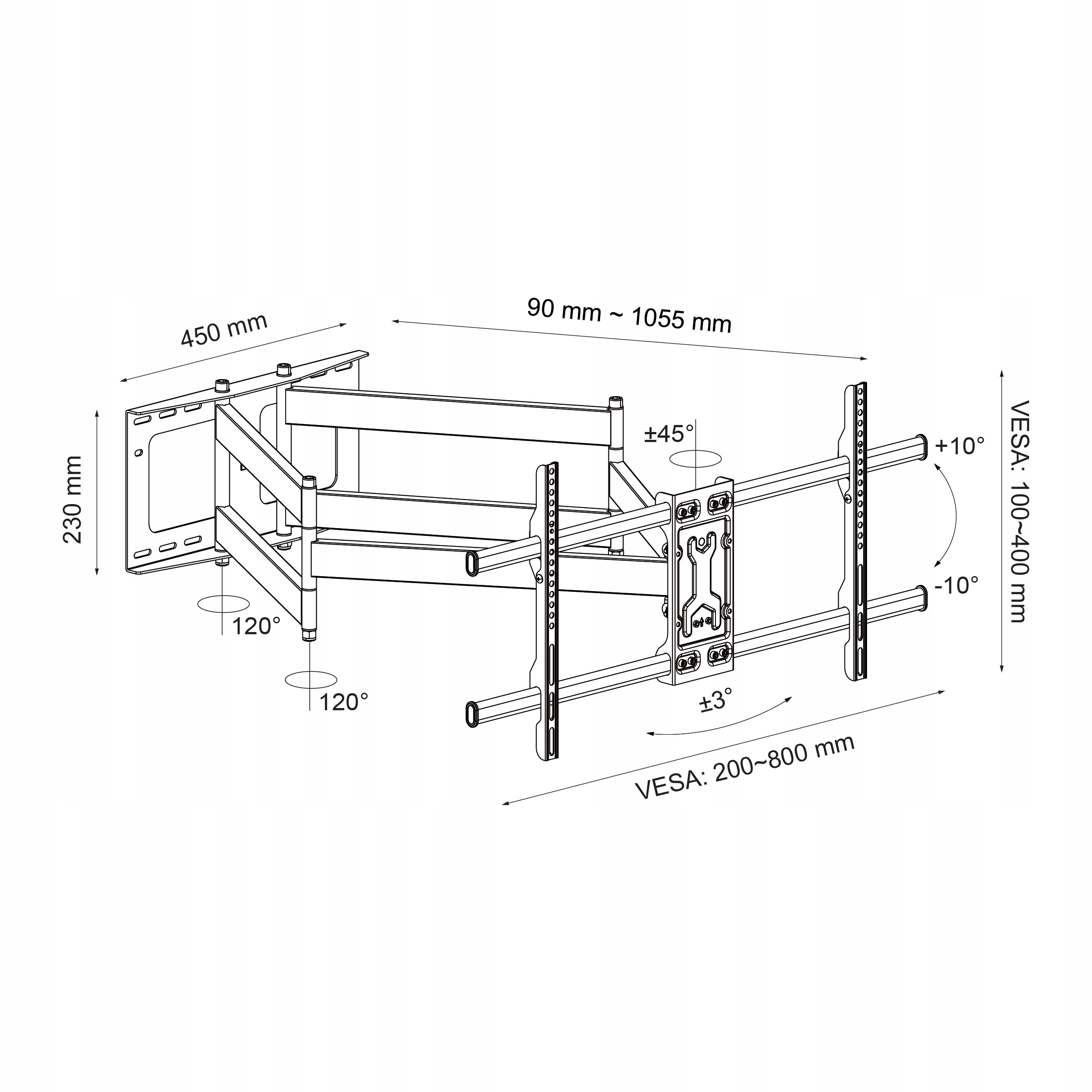 - Регульована відстань від стіни в діапазоні: 110 ~ 1075 мм