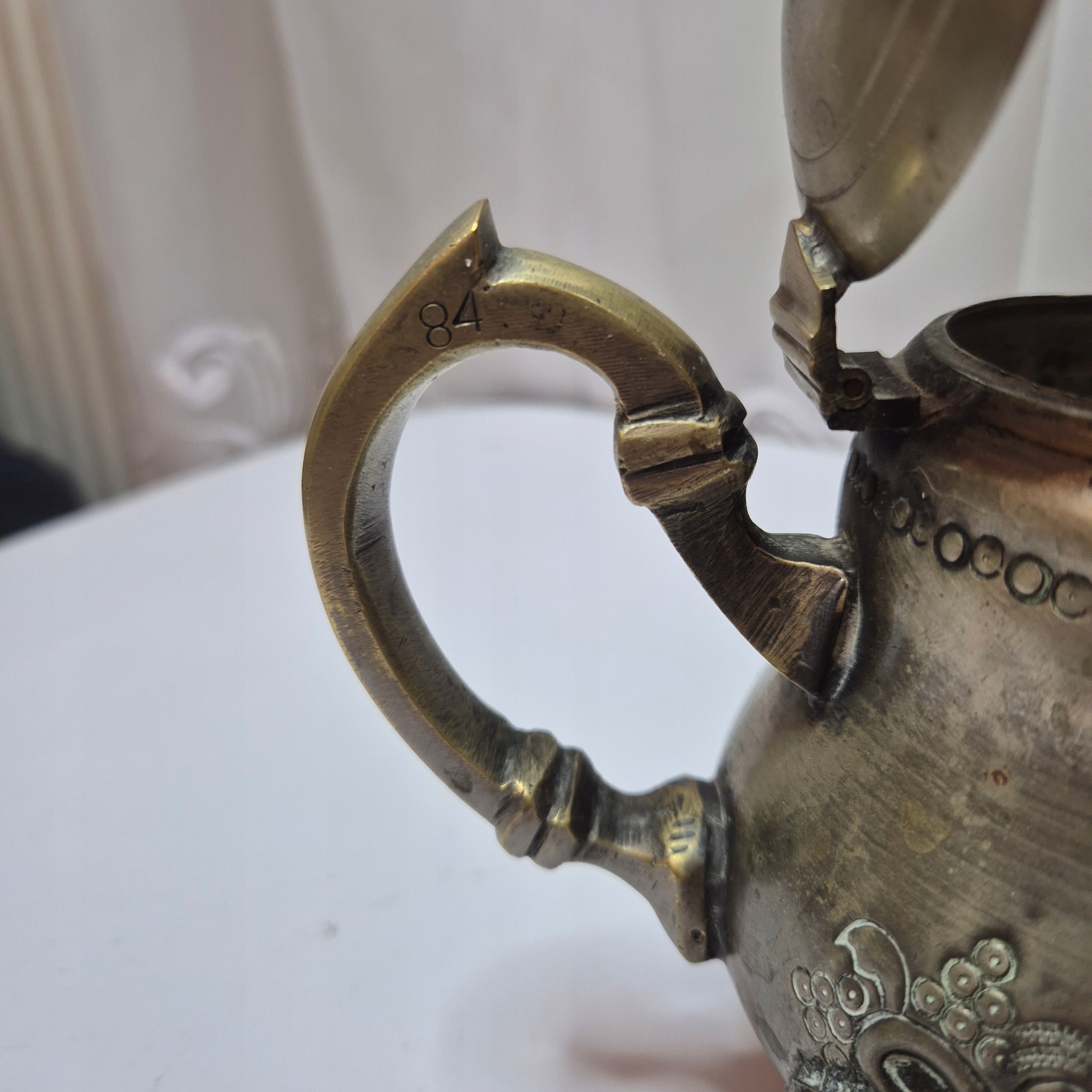 Оплачивая «Очень старый чайник с тарелкой и пронумерованным пуансоном (23).» данный товар из каталога «Кувшины и молочники», вы можете получить дополнительную скидку 4%, если произведете 100% предоплату. Размер скидки вы можете увидеть сразу при оформлении заказа на сайте. Внимание!!! Скидка распространяется только при заказе через сайт.