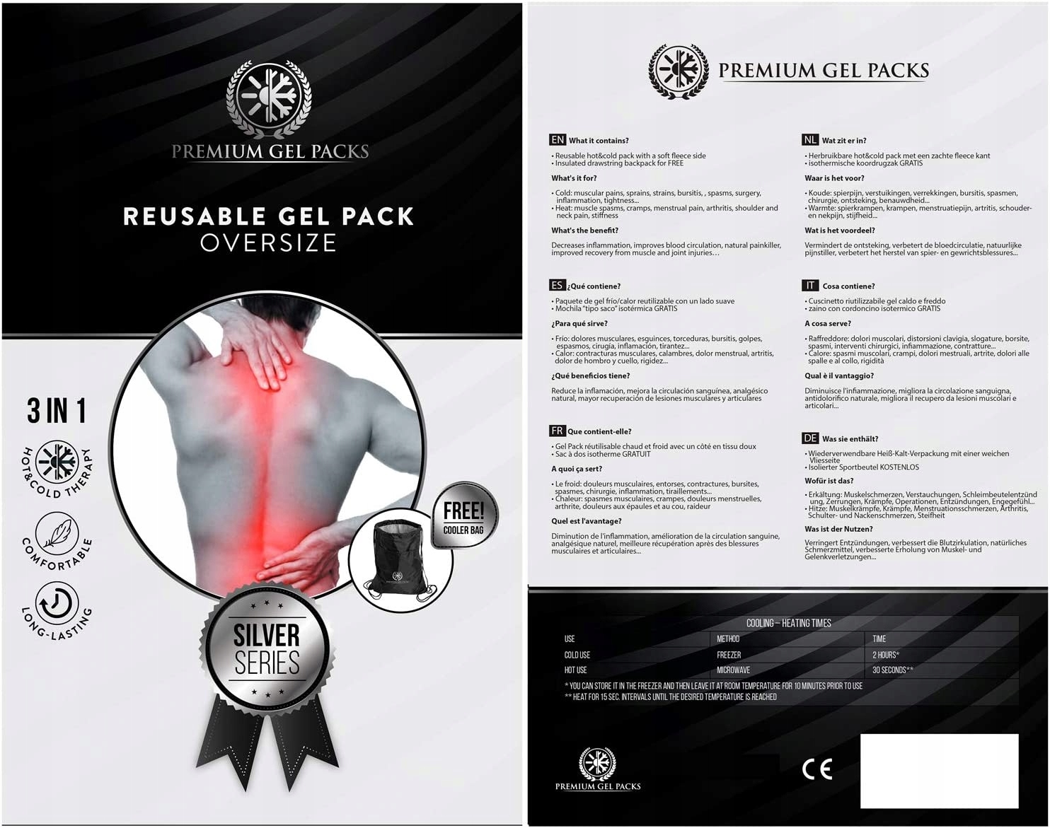 - Великий холодоагент з розмірами 60x38 см ідеально підходить для покриття великих ділянок тіла. Він використовується для регенерації після спортивних травм і завжди наповнений гнучким гелем, який ніколи не замерзає. Завдяки великим розмірам холодної гелевої ковдри ми зменшимо біль і дискомфорт у таких ділянках тіла, як груди, спина, шлунок, стегна та ноги. Він може бути використаний після масажних занять або інтенсивних тренувань для запобігання травм. 4 Gel Pack XXL використовується для зменшення запалення та набряку великих ділянок тіла, таких як нижня спина, сідниці та стегна. Широко використовується в методі рису. Його можна зберігати як в холодильнику, так і в морозилці.