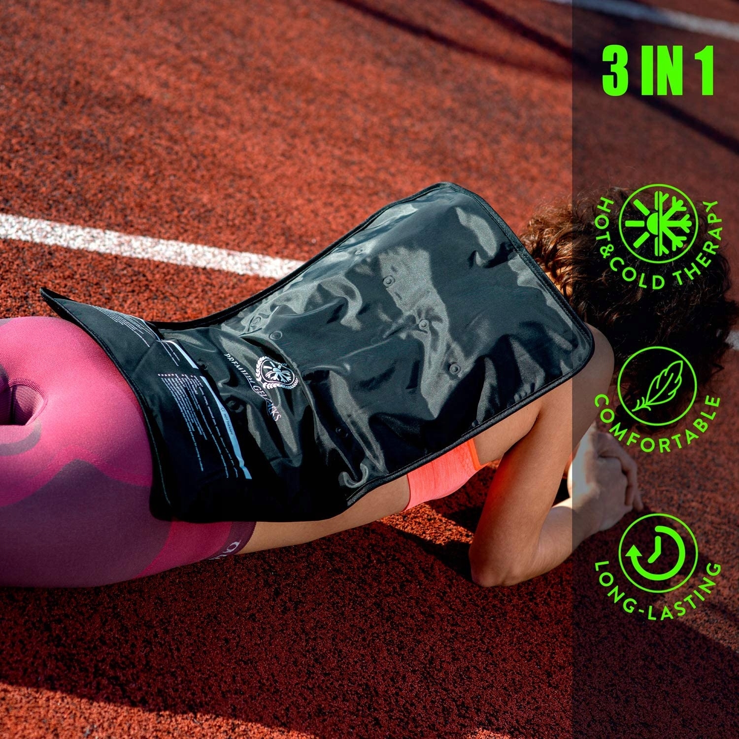 Дуже великий мішок з гелем для багаторазового використання та холодом - полегшенням від болю (60x38 см) з надзвичайно м'якою тканиною 100% комфортом - регенерація після травм: спина, ноги, руки, шия та живіт 1>