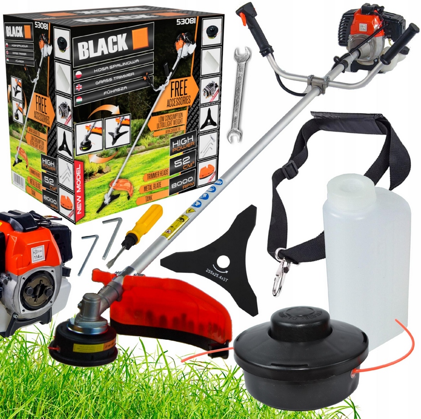 Однією з найбільших переваг цієї коси є голова для встановлення щита , що дозволяє адаптувати інструмент до різних завдань садівництва. Набір також включає в себе чагарник , що дозволяє легко та ефективно розрізати товсті зарості та чагарники. Завдяки цьому, це надзвичайно універсальний та функціональний пристрій.