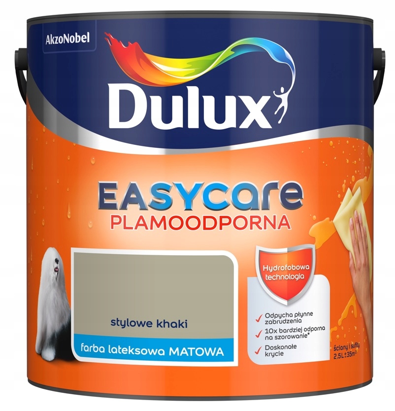 Dulux Paint Paint - стильні хакі, 2,5 л. Завдяки спеціальному покриттю фарба відштовхує воду та всю гладку бруд, не дозволяючи їм проникнути вглиб поверхні. Це створює матові покриття з найвищою стійкістю до плям, а їх видалення - це дитяча гра. Покриття