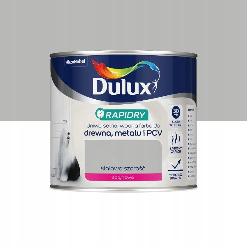 Dulux Rapidry — високоякісна фарба на водній основі, яка швидко висихає, для деревини, металу та ПВХ. Покриття висихає за 30 хвилин.