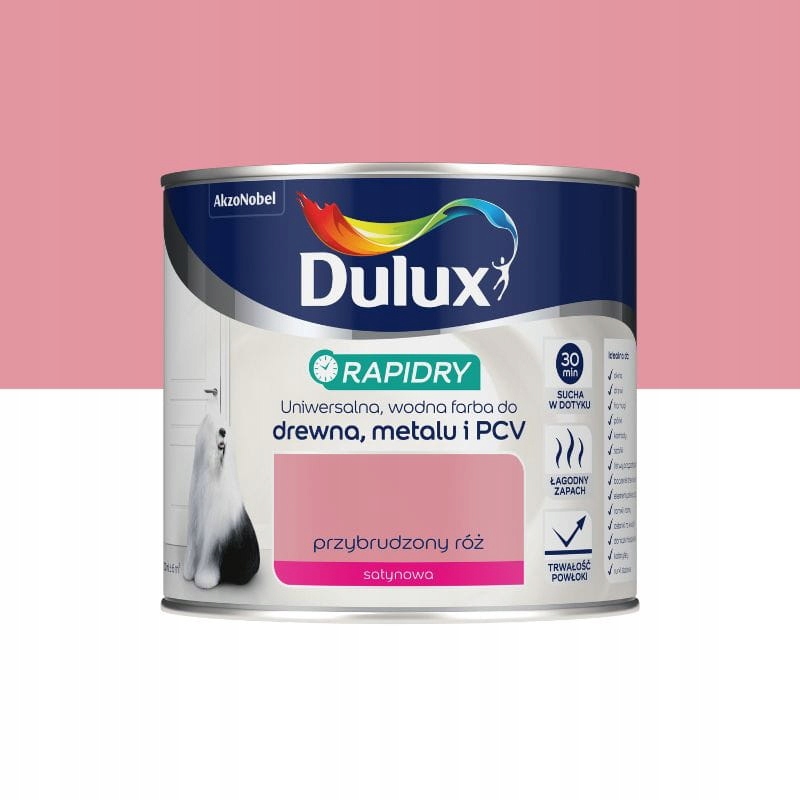 Dulux Rapidry — високоякісна фарба на водній основі, яка швидко висихає, для деревини, металу та ПВХ. Покриття висихає за 30 хвилин.