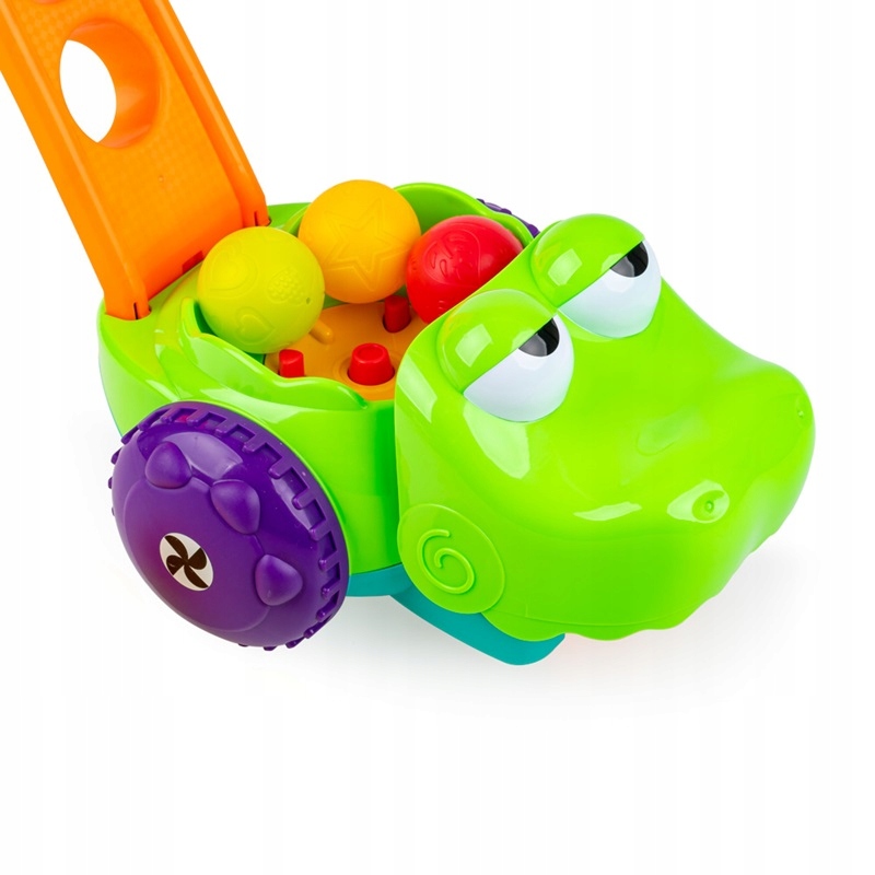 Крокодилек - голодування ковтає кульки! Розкладіть їх на підлогу і збирайте їх усім із цією кумедною твариною. Ви можете грати з ним двома різними способами: статично, кладучи кульки з спини до отворів, розташованих на ручці для свинцю, або динамічно, ведучи крокодила перед вами і збираючи з ним кульки, що супроводжується життєрадісними мелодіями. Ручка знімна, що полегшує зберігання іграшки.