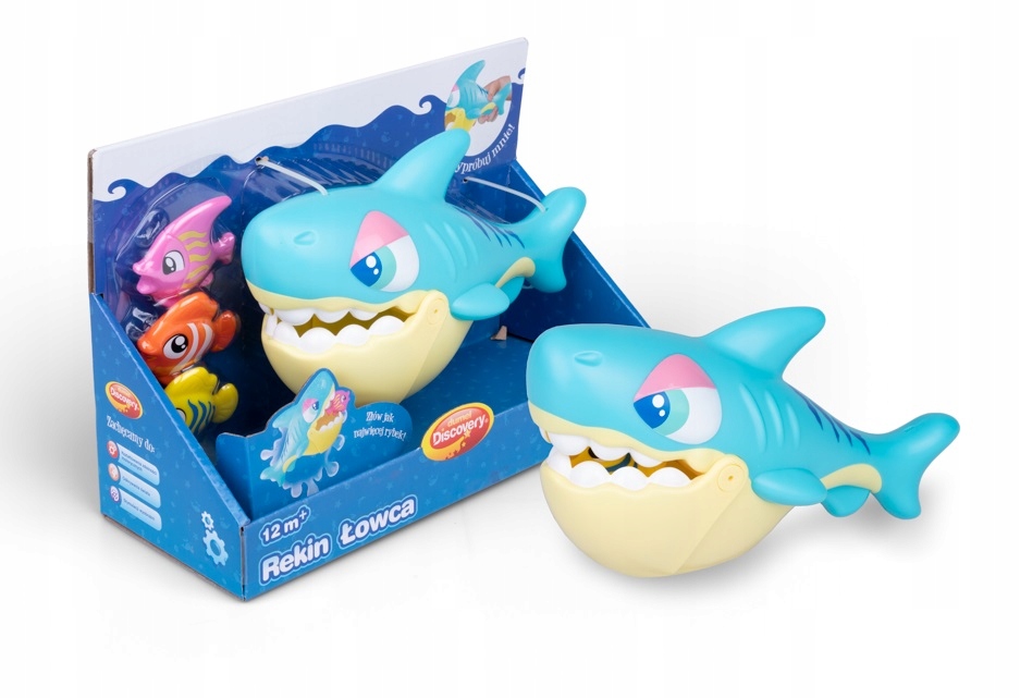 Особливості іграшки: - натисніть на плавник акули, щоб відкрити щелепу - в комплект входить рибка (після кидання у воду риба плаває на поверхні, що полегшує її ловлю) - водна іграшка - вік: від 12 місяців