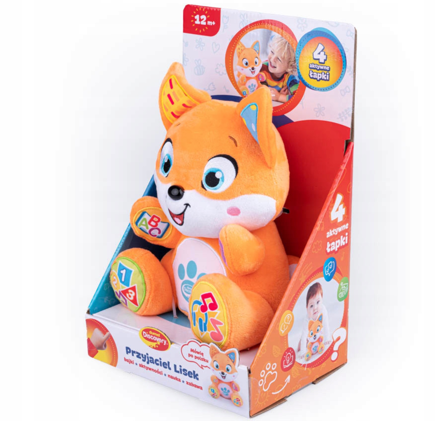 Чи знаєте ви, що є спосіб перенестись у безпечний світ уяви, не виходячи з дому? Міцно обійміть лисицю та потисніть її лапки, щоб разом з нею відкривати чудові казкові країни, вивчати алфавіт, цифри та знайомитися з тваринами. Кожна лапка ведмедика приховує свій сюрприз! Окрім казок, ви знайдете також колискові, пісні польською мовою, вірші та веселі фрази. З малюком завжди може бути ведмедик. Вдень плюшевий друг подарує йому веселі розваги, а ввечері розповість казку або заграє на сон солодку колискову.
